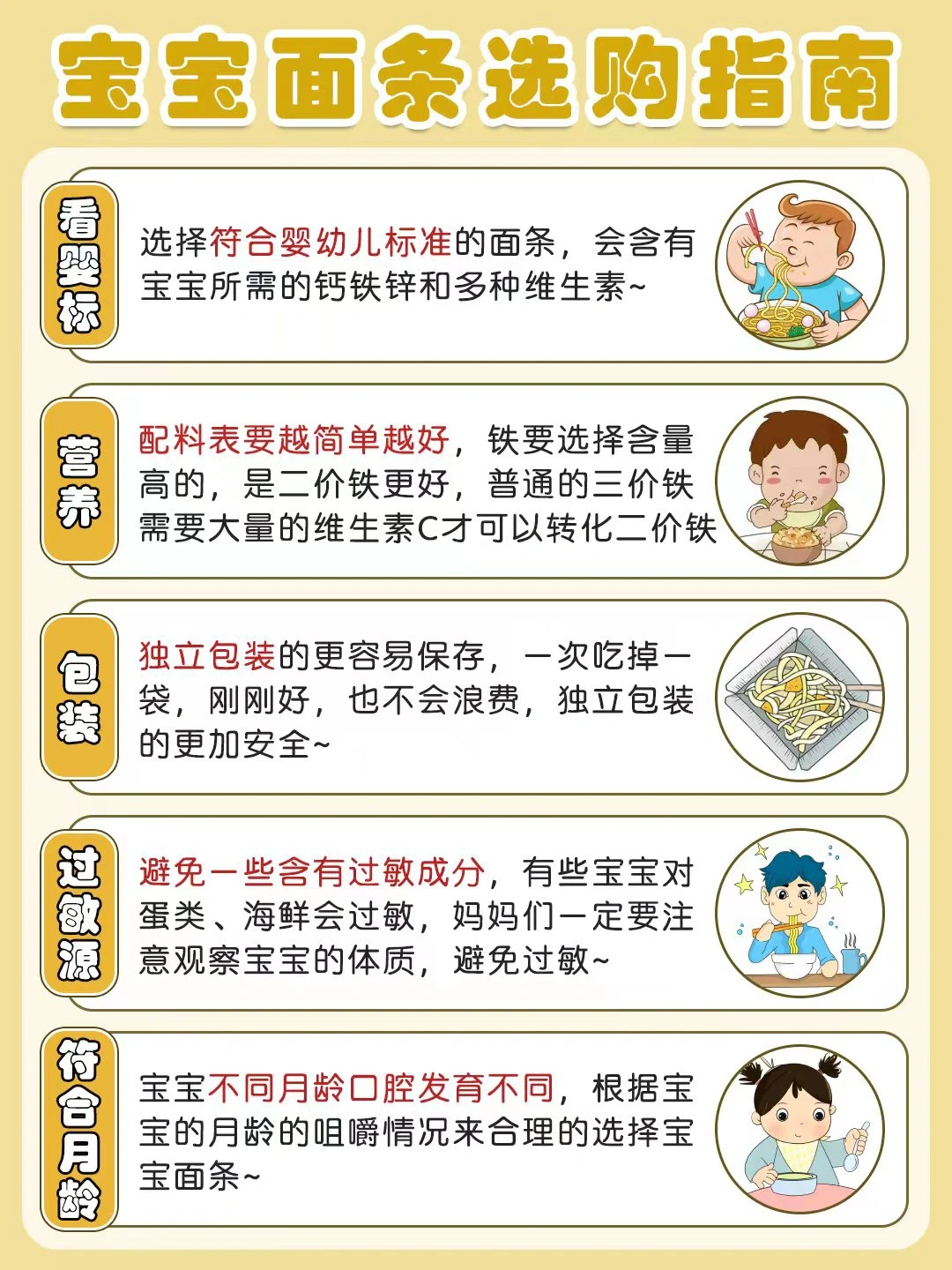 🔸宝宝不同月龄口腔发育敏感期不同,爸妈们应该根据宝宝的实际咀嚼情况来选择适合宝宝面条,每个宝宝发育不同,选择也有所不同