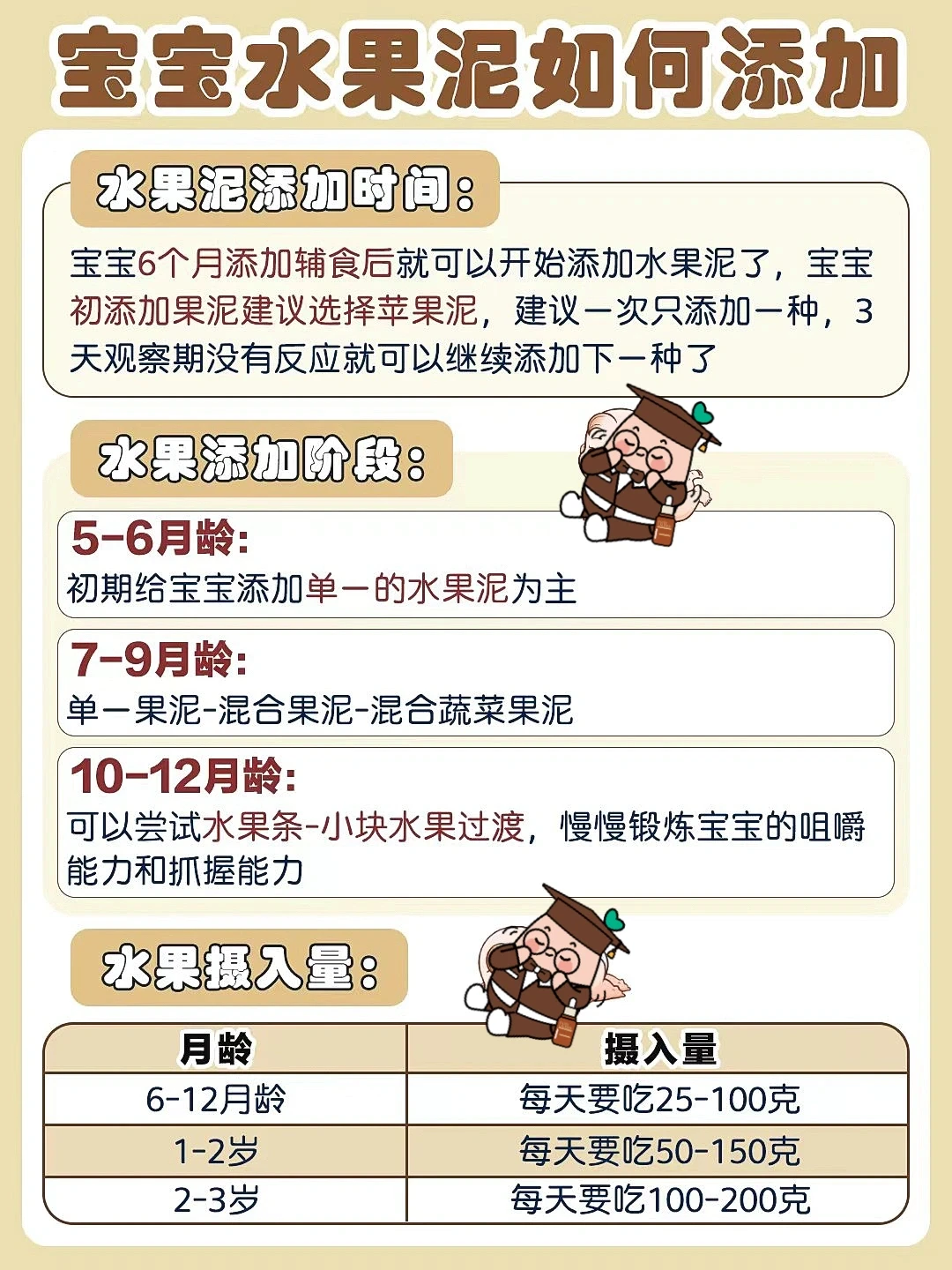 一般建议水果作为宝宝加餐,可以选择两餐之间或者午觉后添加