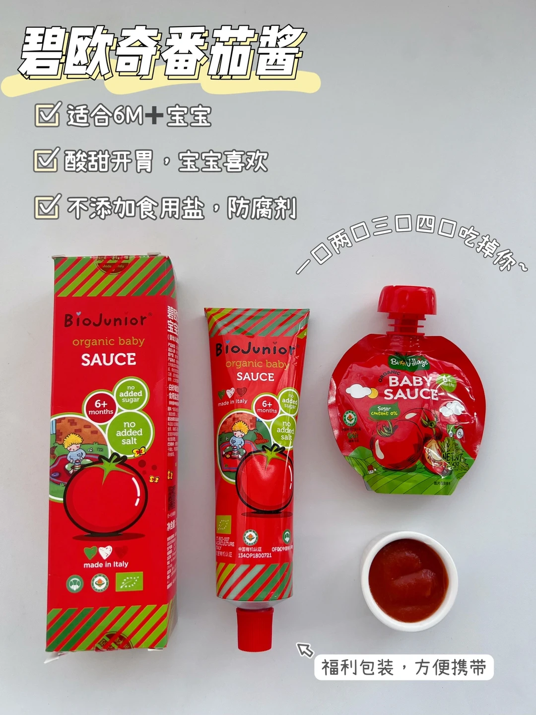 🔸今天用饭的番茄酱是碧欧奇的番茄酱,它符合婴幼儿标准,独立包装,除外携带也方便,不添加糖,盐和防腐剂,给宝宝吃妈妈也放心,可以用来日常拌饭,拌面,酸甜可口,宝宝hen喜欢吃呢~