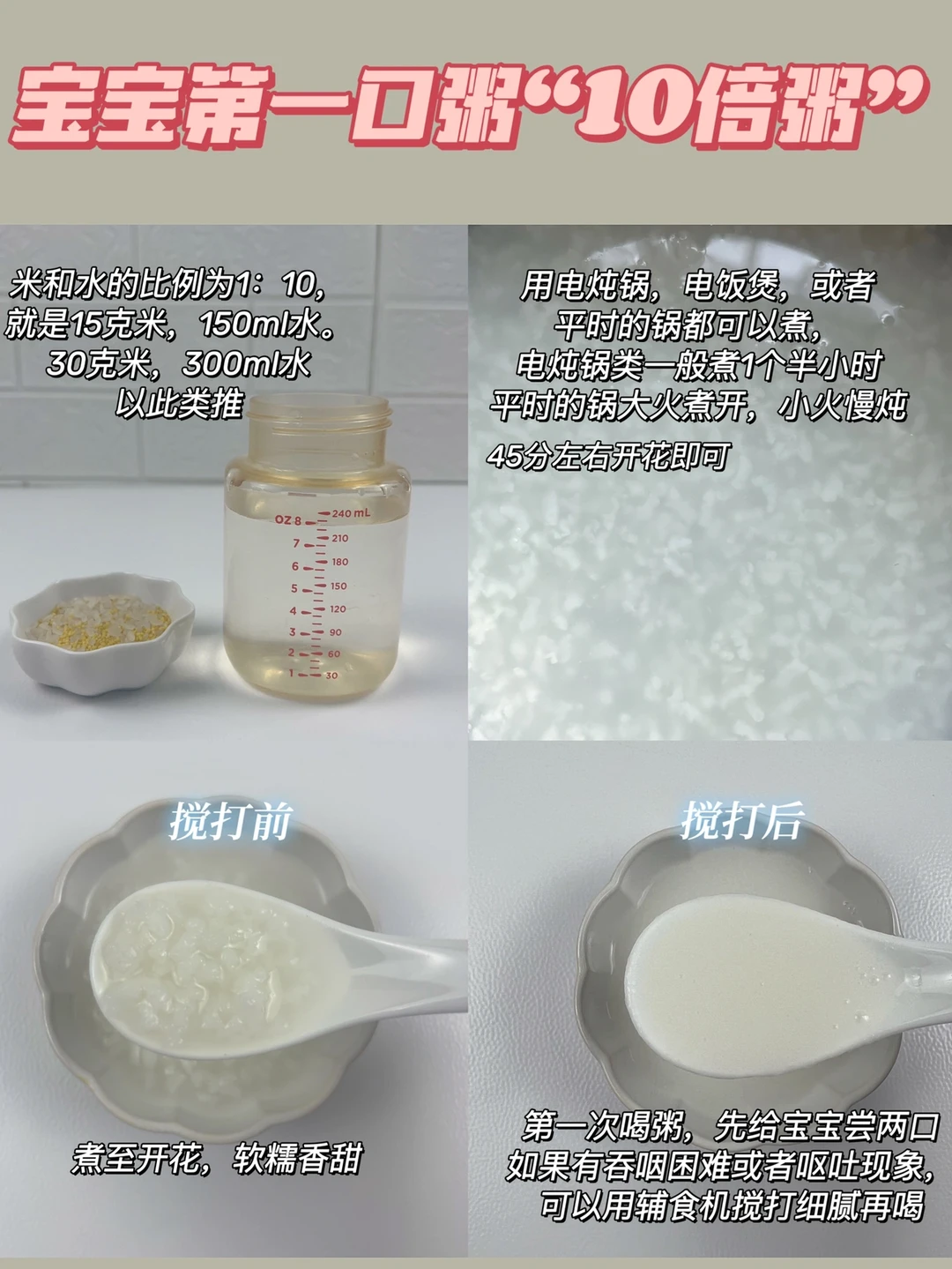 宝宝刚开始喝粥,先尝两口,如果不好吞咽或者有呕吐现象,就用辅食机或者料理棒打碎了再喝!然后可以过渡到8倍粥,7倍粥,5倍粥~