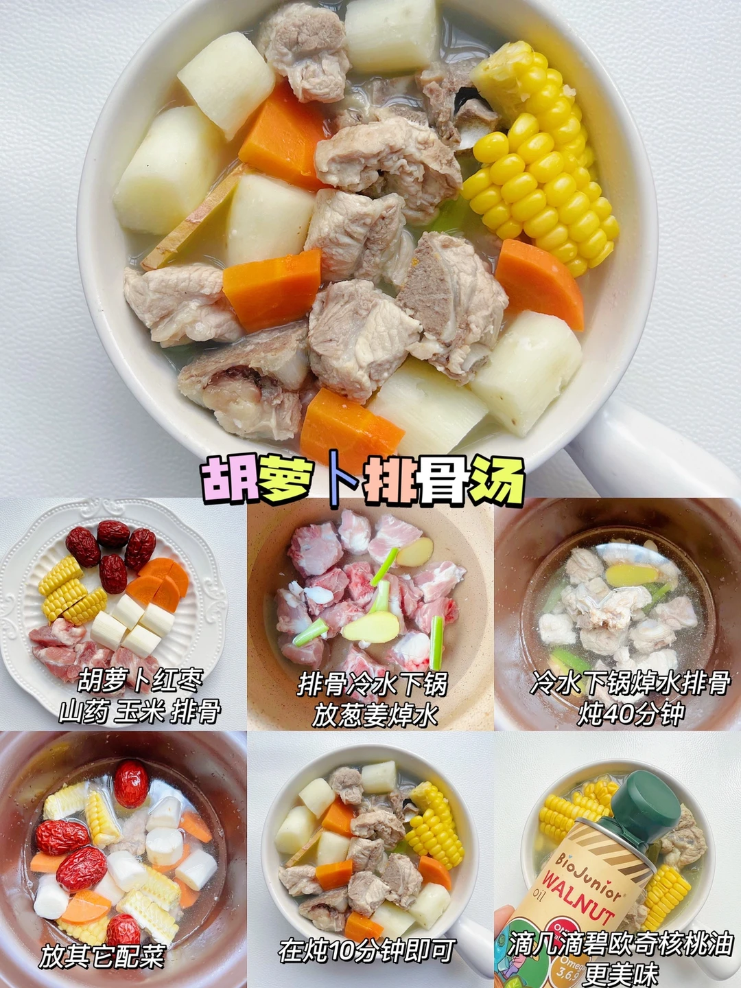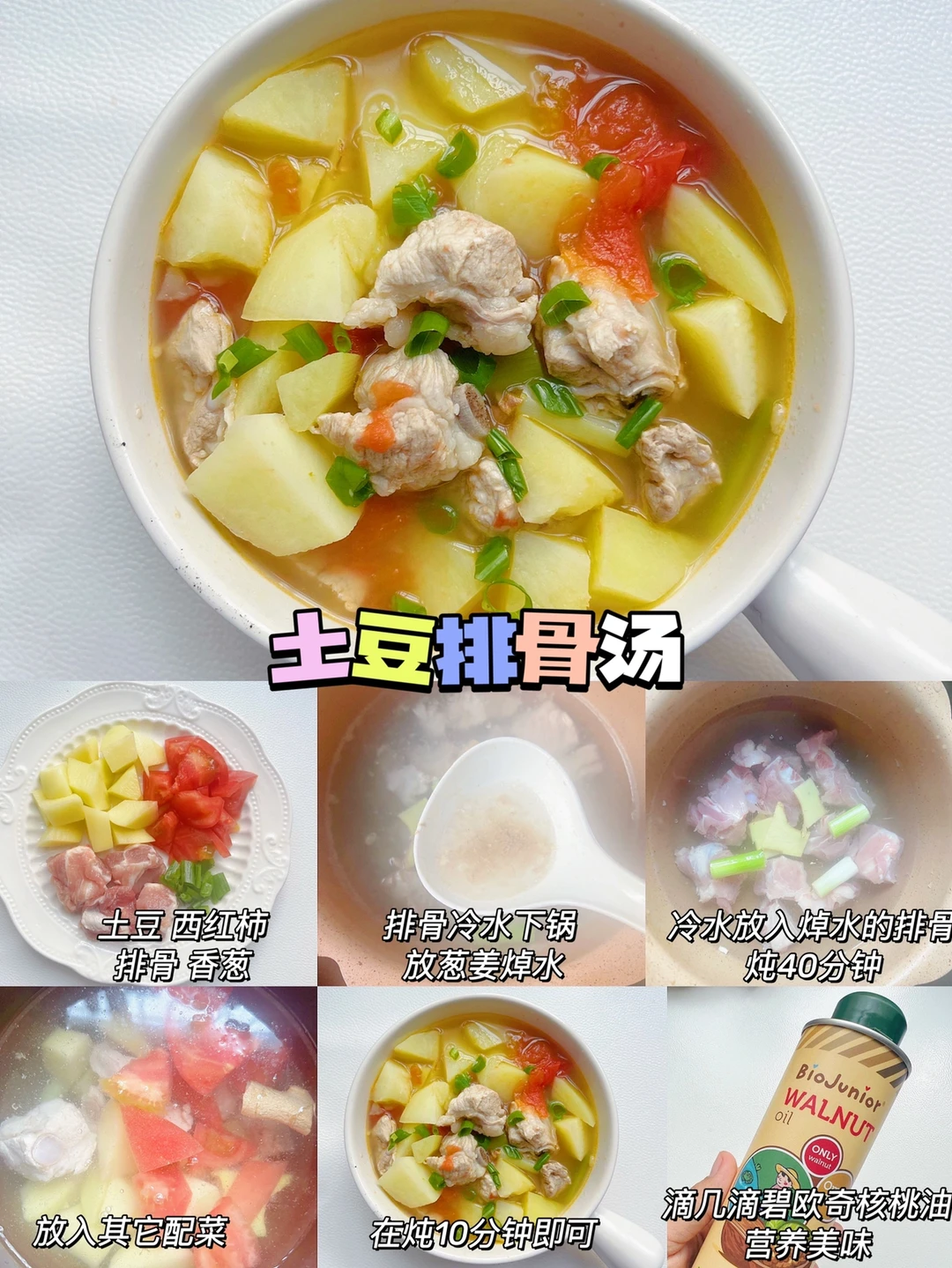 🔅营养炖汤统一做法:排骨 | 猪骨 | 牛尾骨 |鸡腿 | 其他肉类 | 切成合适的大小,加葱姜➕水焯水去腥去浮沫,然后捞出过凉水,放入电炖锅中,煮30分左右,菌菇类的可以放进一起煮更有味,然后加入其他喜欢的蔬菜,不好煮的就提早放进一会,煮熟煮烂为止,蔬菜类的提前10分钟放入即可,1岁以上➕调味品,出锅滴几滴核桃油,营养又美味,大人小孩爱喝,赶紧安排吧❤️