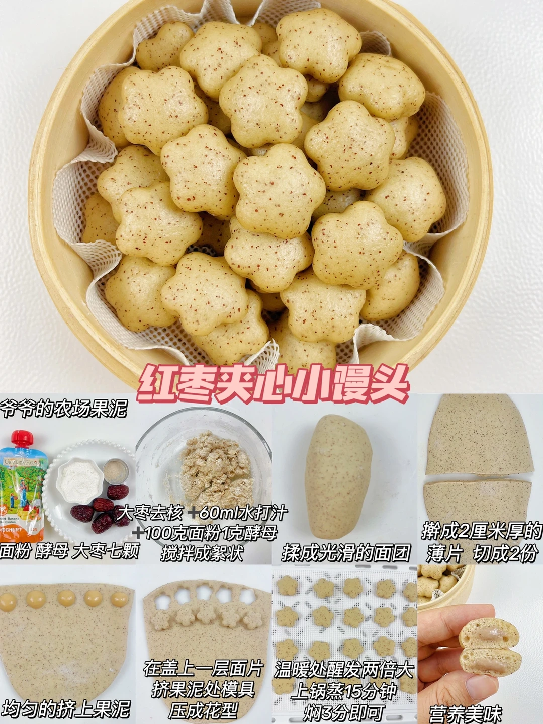 ✅今天做小馒头,夹心加入了爷爷的农场果泥,有机水果,配料表hen干净,只有纯水果,口感很细腻,性价比特别高,适合刚添加水果的宝宝!还有酸奶果泥,酸奶加上纯水果泥,生牛乳发酵,还添加了3种益生菌,口感酸甜可口,适合吃过酸奶的宝宝🏻,蒸出锅,我家宝宝就抢着吃呢~