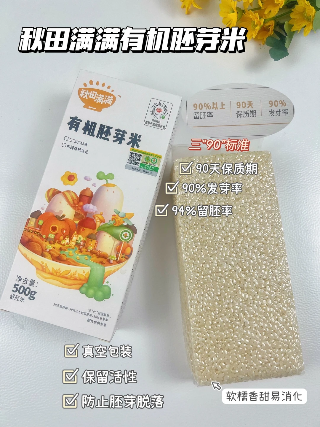 ✅做盖浇饭用的是秋田满满胚芽米,它留胚率非常高,胚芽就是稻米的精华,所以这款很适合给小宝宝补充营养~,做出来的米饭🍚粒粒饱满,口感软糯,而且每次买到的胚芽米日期都很新鲜,保证了胚芽活性,宝妈们可以放心选择哦~