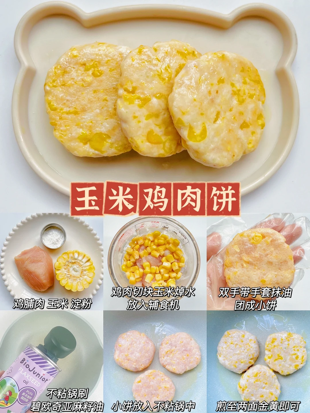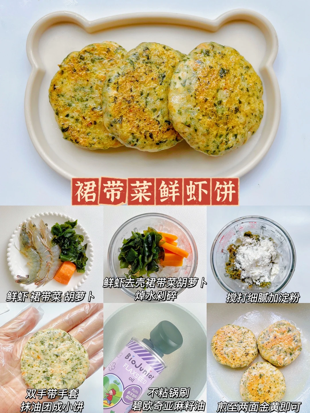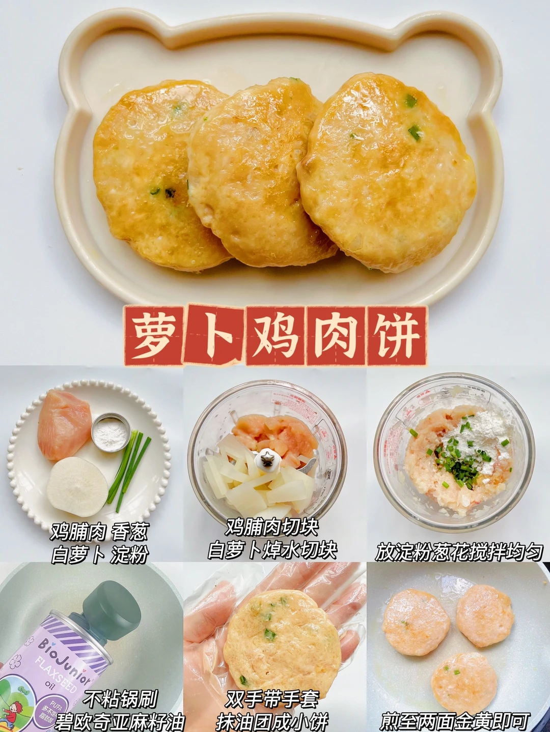 一种肉肉➕2种或者2种以后时蔬(一般都需要焯水更容易消化)➕适量淀粉搅拌均匀,蛋清不过敏的可以加个蛋清更嫩,时蔬没有固定比例,喜欢可以多加,不喜欢少加,最后搅拌至有明显阻力,1岁以上➕调味品,双手带手套抹油团成小饼,放入刷油的不粘锅中,小火慢煎至金黄熟透即可,也可以➕一点点水焖下熟的更透些!