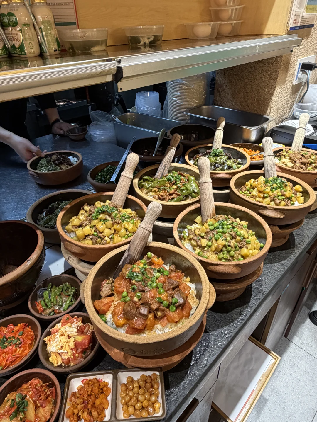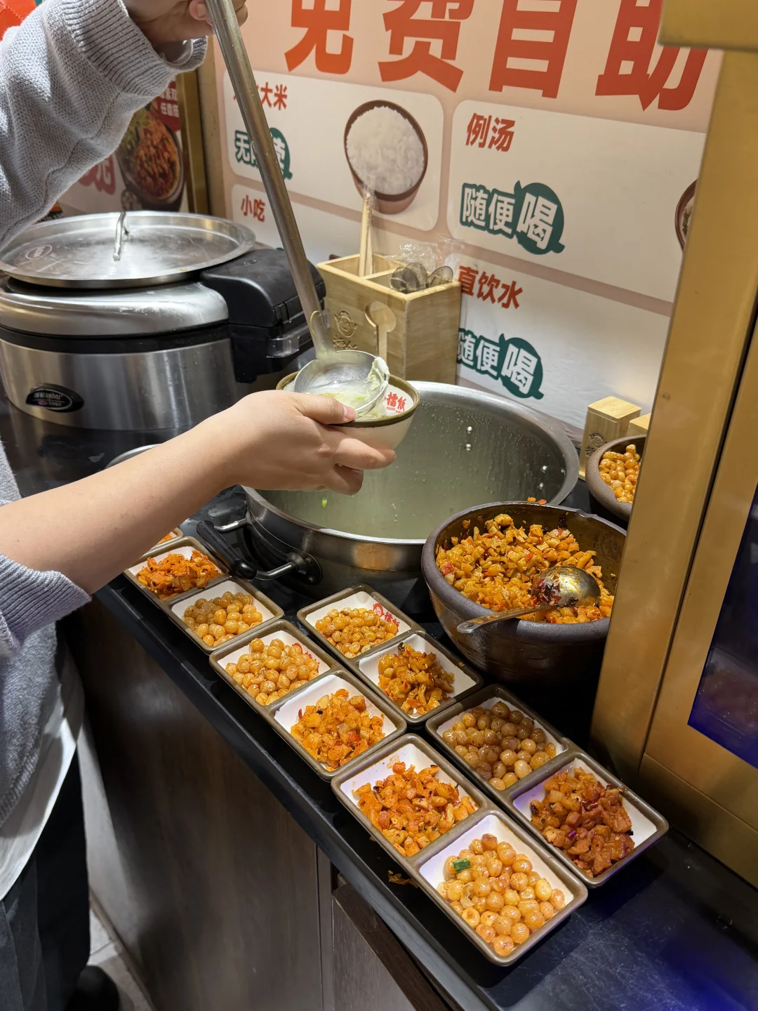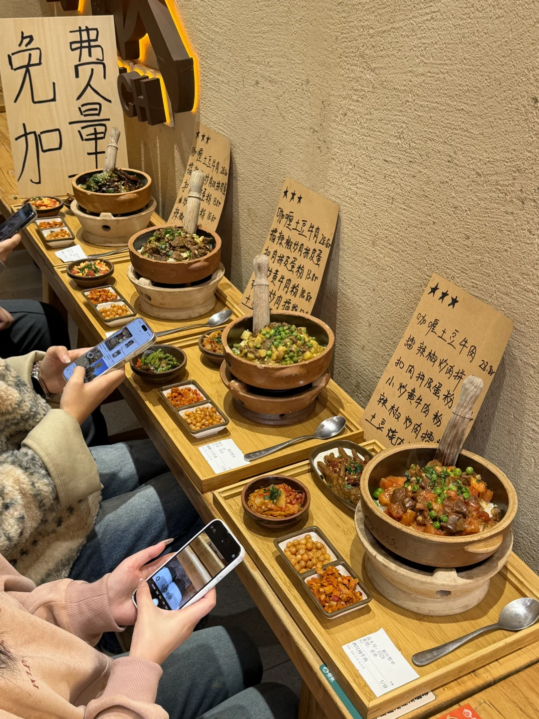 配菜、汤、米饭、茶水。。通通免费无限续!!咖喱土豆牛肉、擂神扣肉!!每一个都好好吃!!很适合一人食哦!!!就在黄兴广场!!!