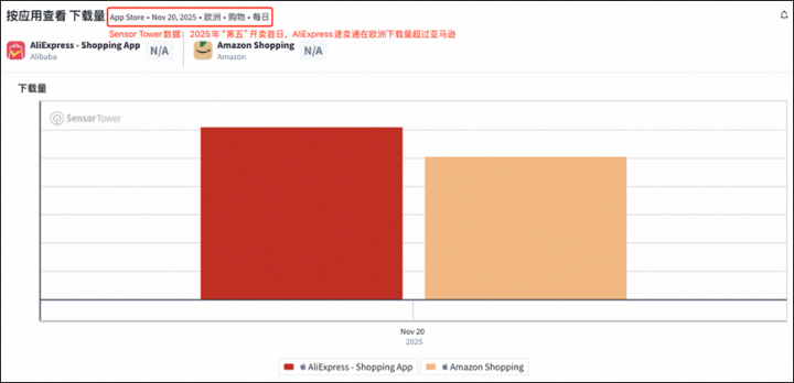 2025“黑五”开卖首日,速卖通在欧洲下载量超过亚马逊。