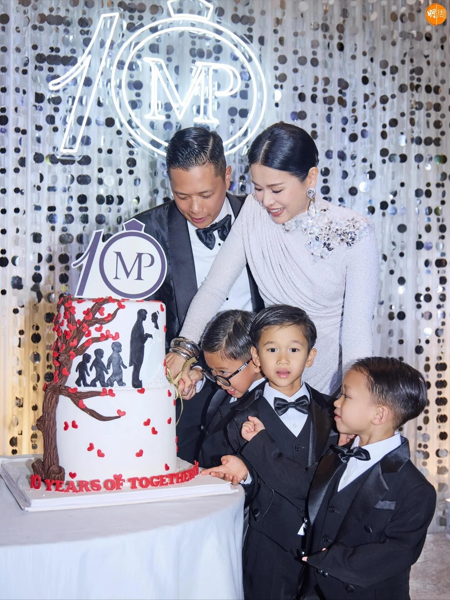 胡杏儿于 2015 年与当时交往未满一年的李乘德(Philip)闪婚,婚后育有 3 个儿子。日前,二人举办了锡婚庆典。胡杏儿在社交平台分享了当晚派对的庆祝照片:她先是身穿高贵端庄的银白色晚装,随后换上性感的浅米白色西装;老公李乘德与 3 个可爱的儿子则身着帅气礼服,造型十分吸睛。到场祝贺的嘉宾包括陈山聪、黄智雯、车婉婉、林盛斌(Bob)、胡定欣、黎芷珊等,众人皆盛装出席,为庆典增添不少星光。其中,胡定欣、林盛斌(Bob)、罗力威等更上台高歌助兴,现场氛围热闹又温馨。