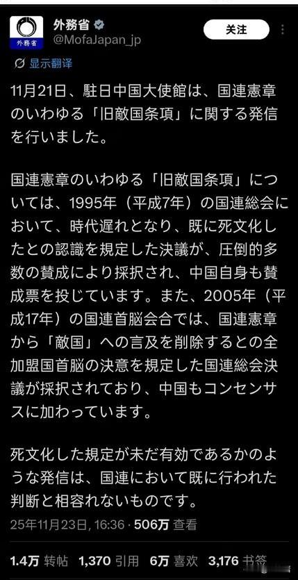 “前敌国条款”看来真的是让鬼子慌神炸毛了? 发现发动二战的这些轴心国成员,如果再次心怀不轨,五大善人就可以直接动手…… 这个条款确实是不错,当年斯大林和罗斯福真的是有战略远见的。 虽然德国和日本加入了联合国,而且1995年的联合国大会也确实通过决议建议说要考虑删除这个前敌国条款…… 但是鬼子现在想把这玩意儿叫成僵尸条款就挺可爱了。 行啊,这个条款就算是僵尸吧,但是只要上三常愿意让这个僵尸都不用复活就可以对付你鬼子喽! 说到底,今天的一切包括联合国和整个战后的世界格局都是当年雅尔塔和德黑兰会议决定的。 那阵子因为常凯申不争气,搞得豫湘桂大溃败,结果弄得中国没有坐上那两张会议桌,还差点被端上了桌。 但是今天我们可是凭着实力坐在桌边上了,而且我们还有实力把鬼子端上桌! 这是几代中国人的努力!