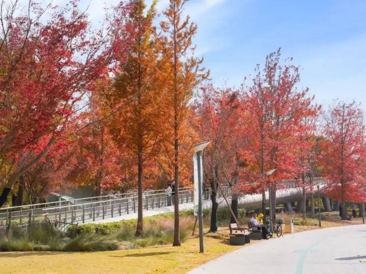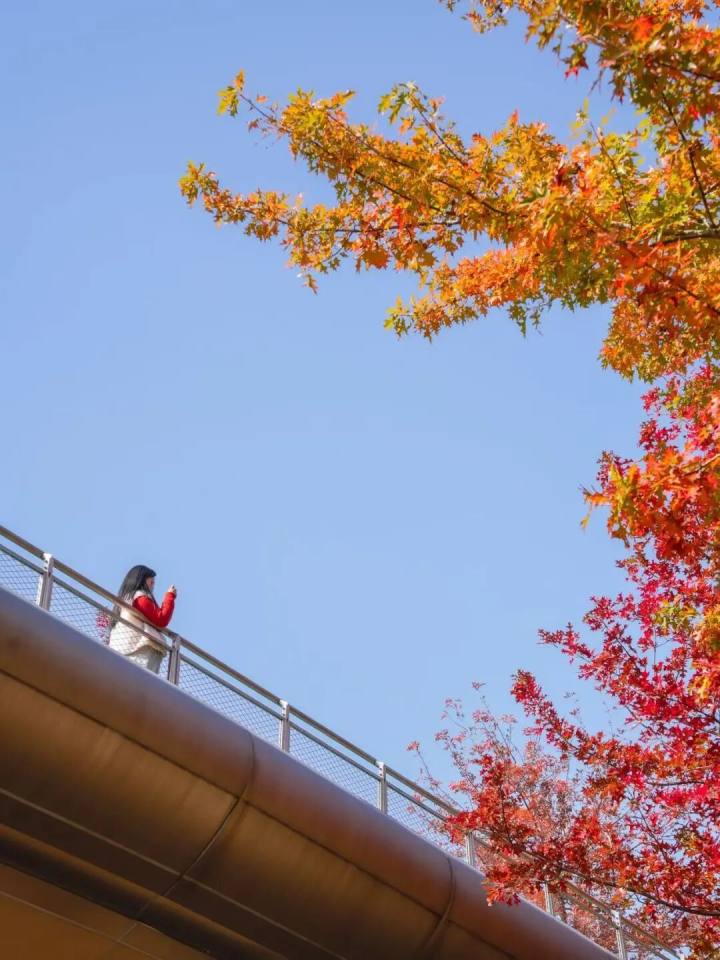 最近在朋友圈刷到一张照片——一座流线型的现代天桥,被漫天橙红金黄的枫叶温柔包裹,一下子击中了我的心。