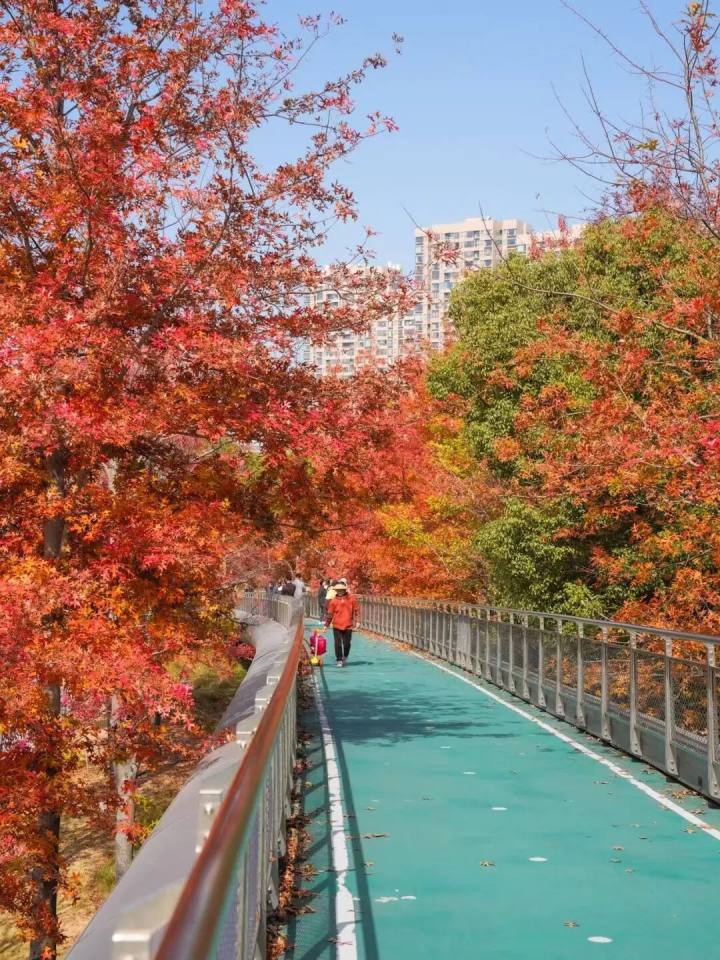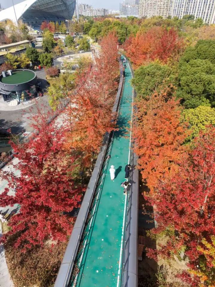杭州“红枫天桥”红了!来城北这个公园免费赏秋→