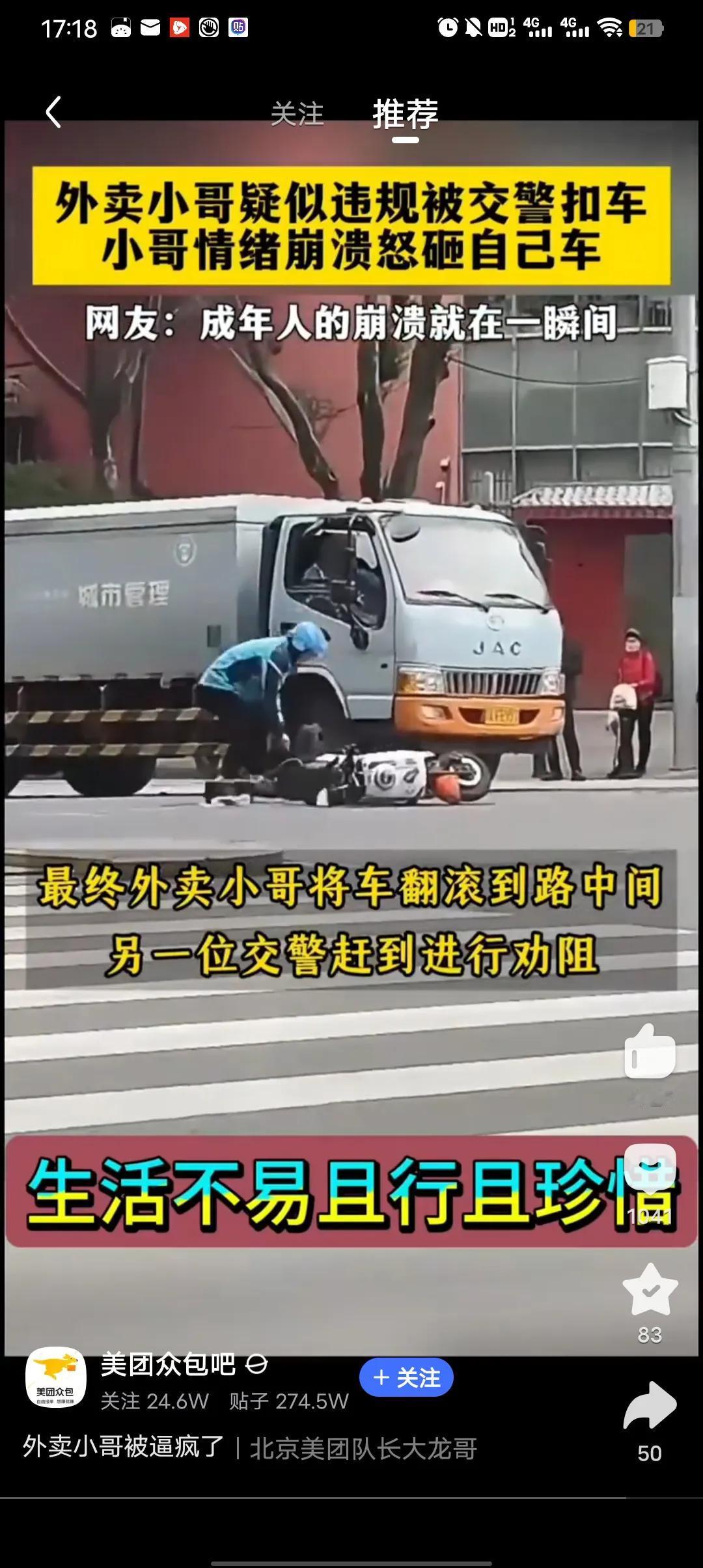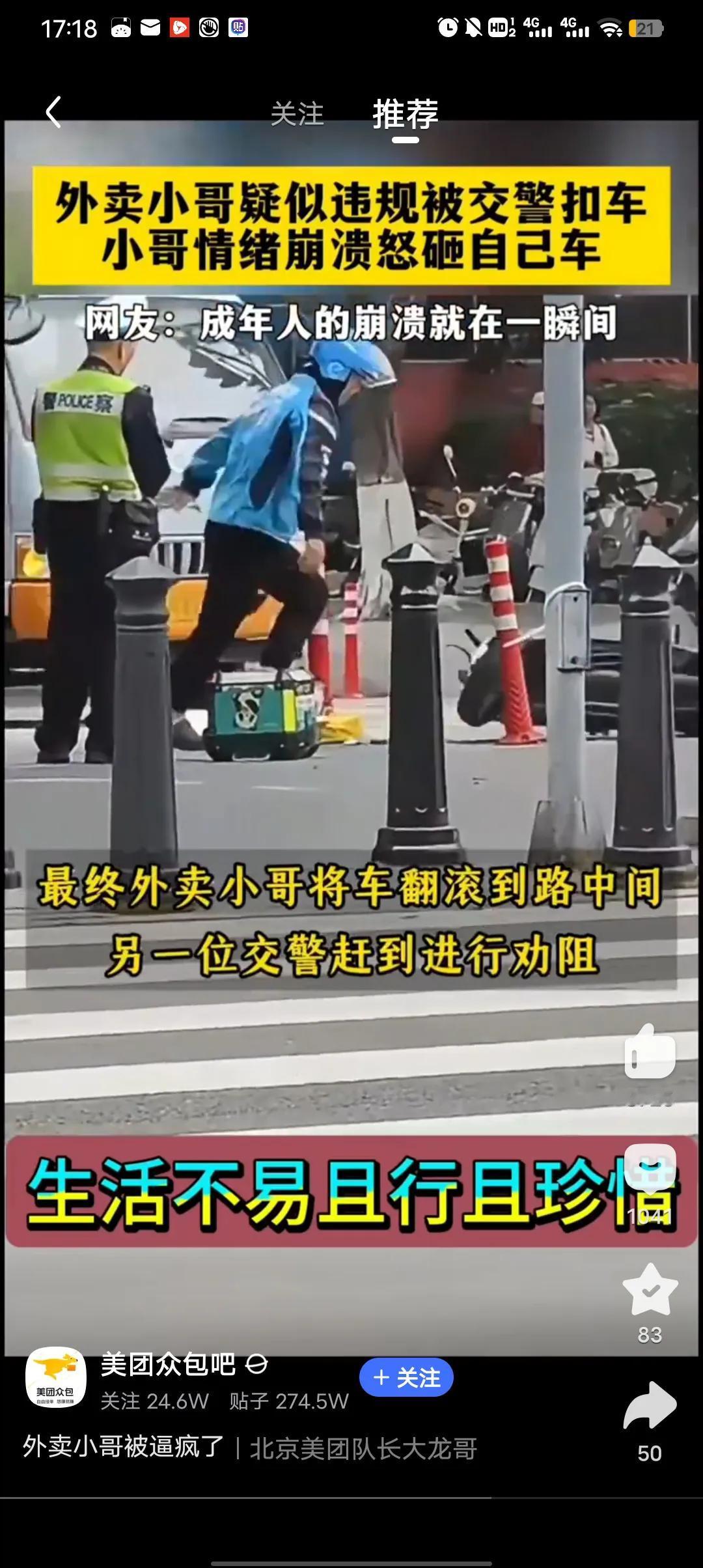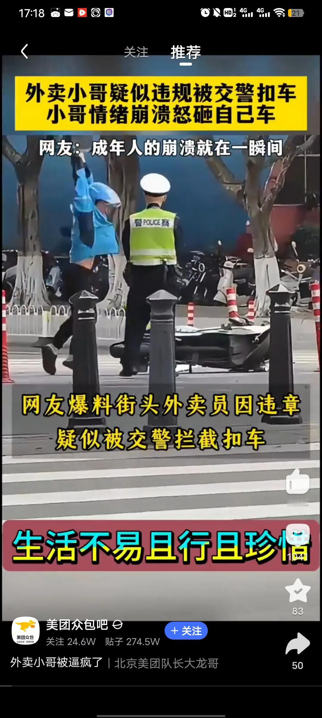 成年人的崩溃就在那一瞬间,疑似外卖小哥违规被交警扣车,小哥可能当场崩溃,知道小哥不容易,但安全也重要,现在路上的外卖小哥确实有点过了,送单重要安全更重要。 成年人崩溃就在那一瞬间,可能就是生活中或者工作中的一件小事,一个小小的导火线让成年人彻底崩溃。 生活不易,请多多珍惜。 外卖小哥 送外卖事故 外卖被差评 骑手超时 外卖员防卫过当 外卖平台乱罚款 外卖员停车事件 骑手超时被扣款 外卖员超时送餐 外卖超时问题 外卖员翻车事故 外卖员交通安全 骑手超时扣款 美团扣分制 外卖平台扣费
