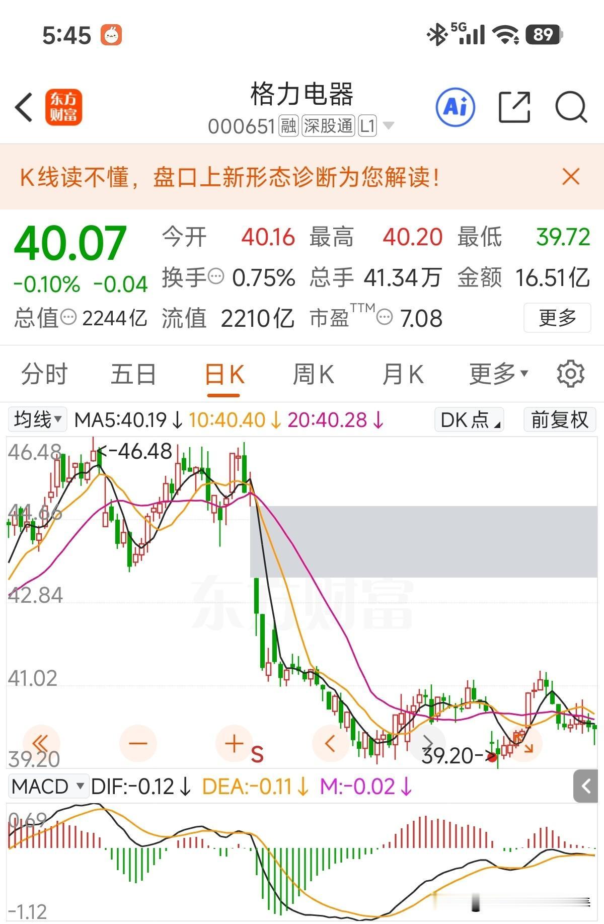昨天开临时股东大会,对比之前股东会,这次关于股东会资讯很平静,董总也没再爆“金句”! 明显感觉董总把机会让给新团队发挥!整体总结下来,目前经营确实有压力!但既定战略没变化!国际化、多元化一直在努力!格力钛部分问题已解决,在手订单10亿!相信后续盈利也只是时间问题! 同时在投资者回报方面,会继续维持高分红策略,回购也会择机推出! 至于股价,今天微调整4分钱!目前7倍市盈率,7.5%股息率,这估值本也没指望有什么大利好[呲牙]