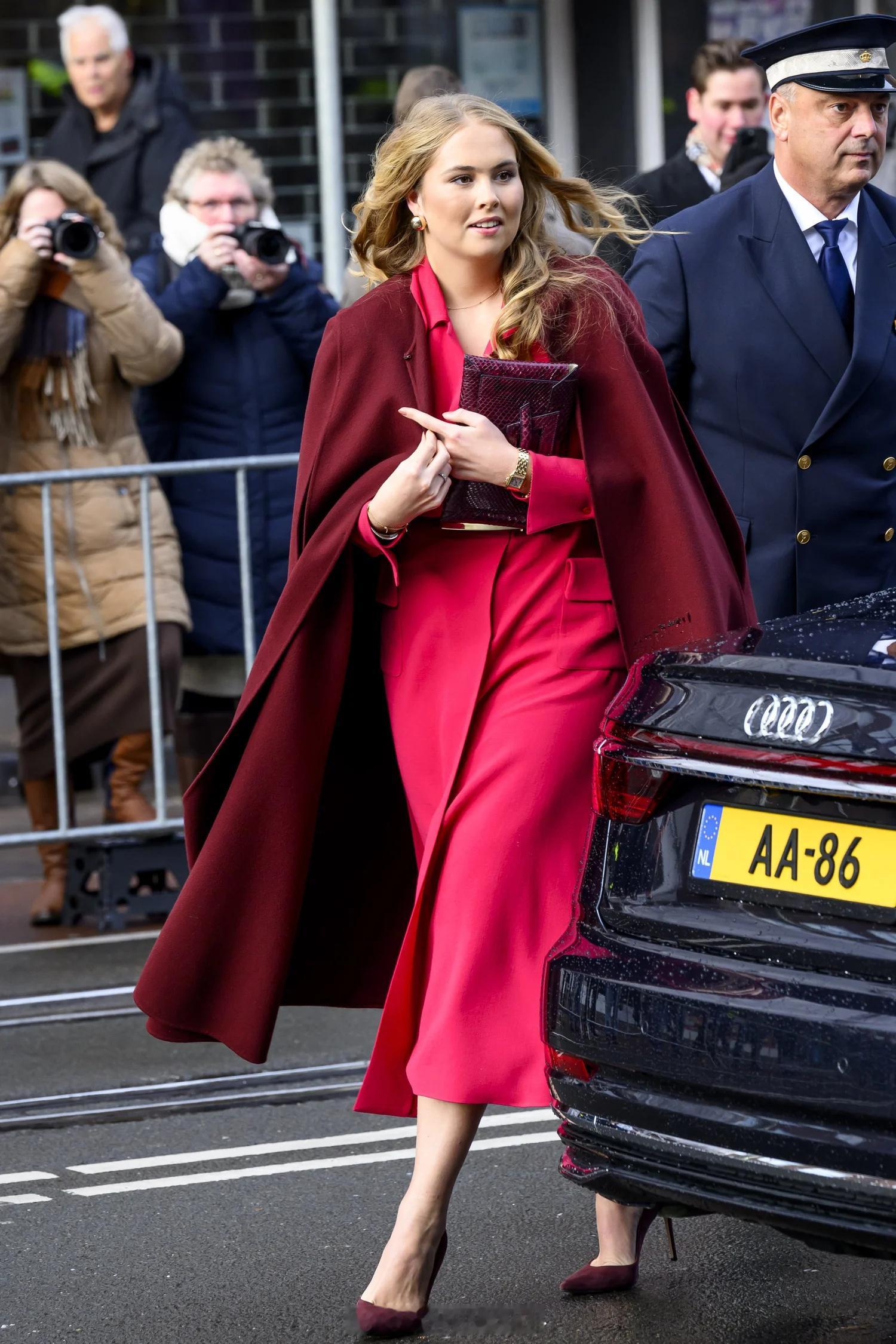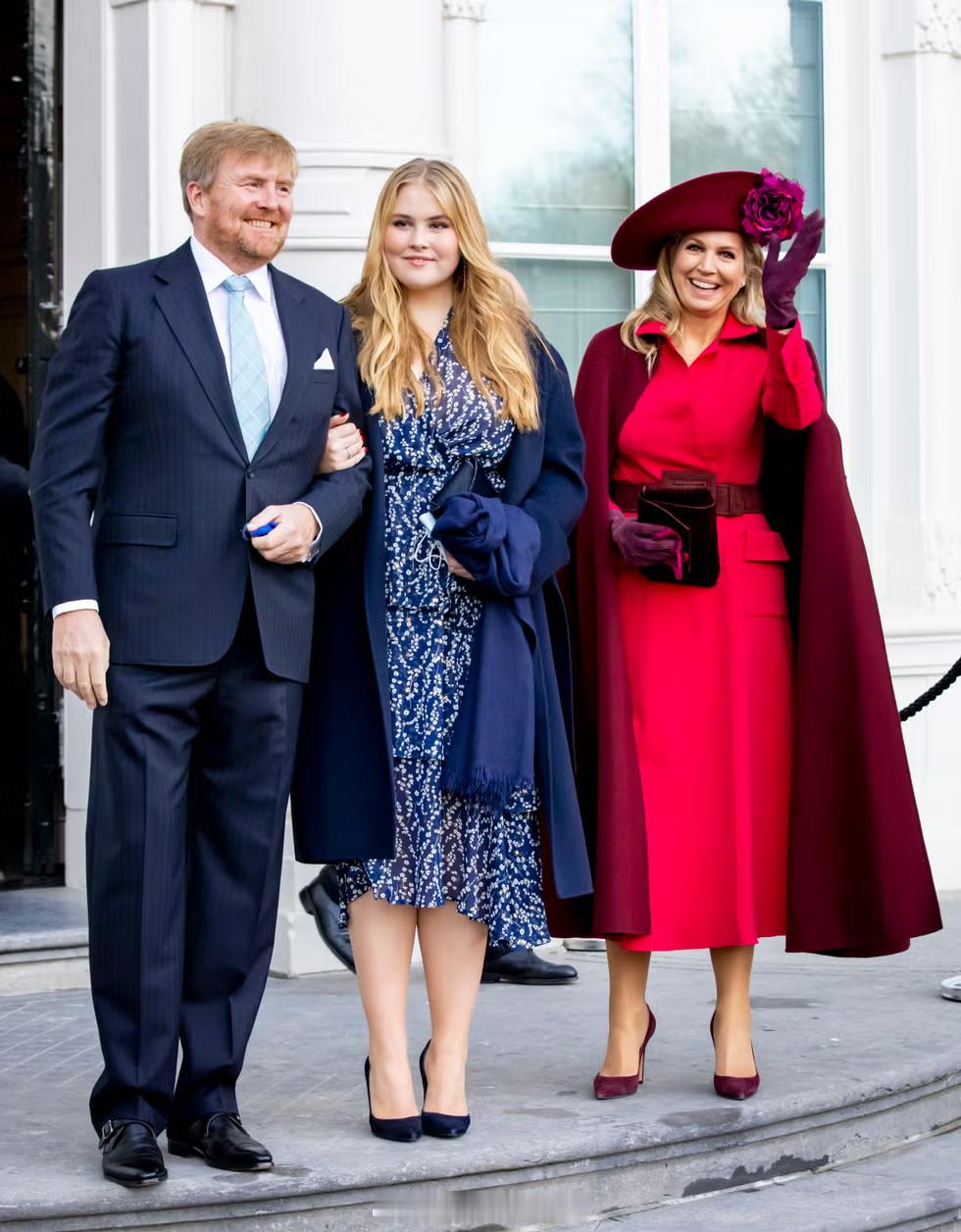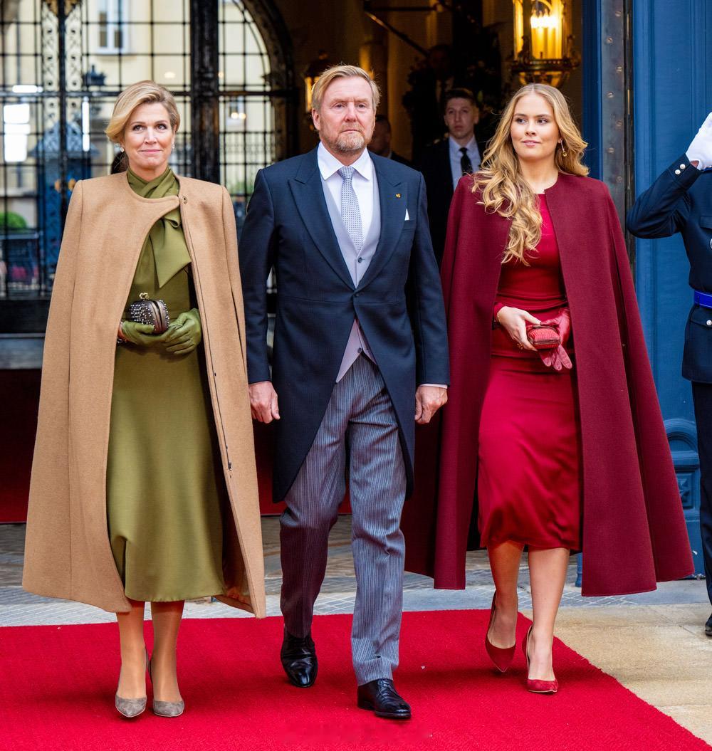 前几天去开会时,荷兰王储凯瑟琳娜-阿玛利亚公主披肩和裙子都是从亲妈玛克西玛衣柜里扒拉的砖红色华伦天奴披风就老朋友了,玛克西玛穿了10086次,阿玛利亚10月去卢森堡的时候也穿过里搭的natan红裙玛克西玛则在阿玛利亚18岁的场子穿过母女俩身形和衣品都比较接近