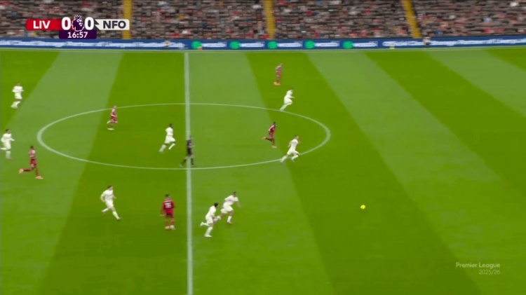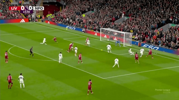第17分钟这次进攻尤为典型:伊萨克回撤分球后迅速前插,等待直塞传球——这本是他在纽卡的标志性套路,萨拉赫也曾屡次完美演绎这种传球,但这次埃及人的传球力道过大,错失良机。