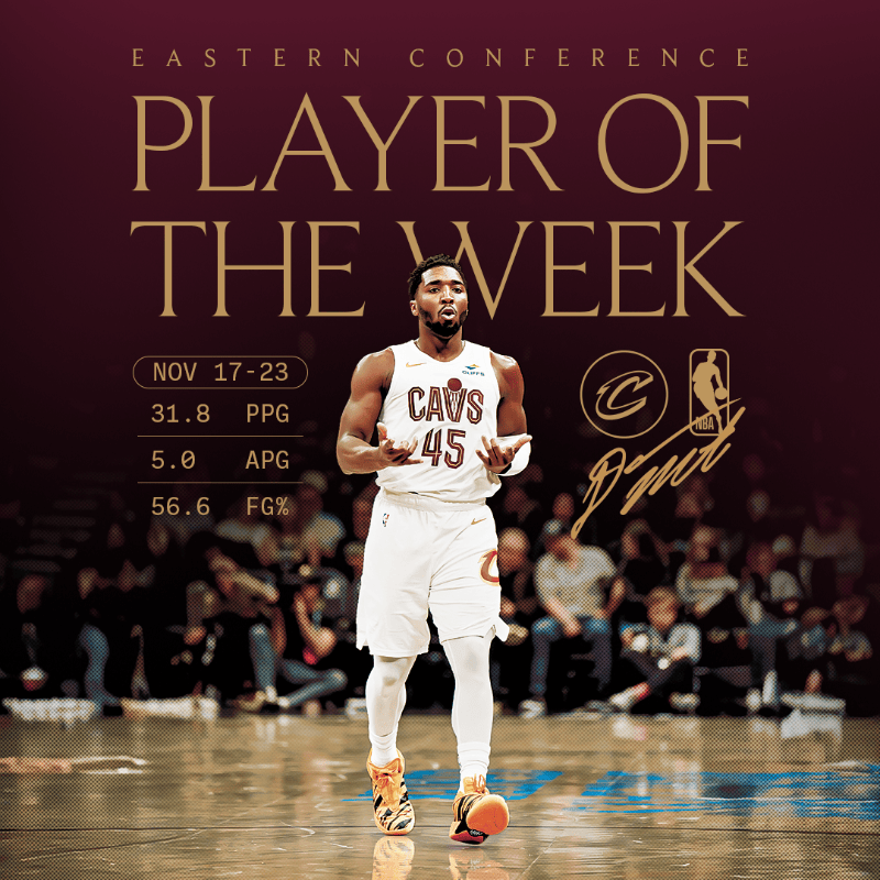 “网已经织起来了!多诺万-米切尔当选为上周东部周最佳球员!”骑士官方附文道。