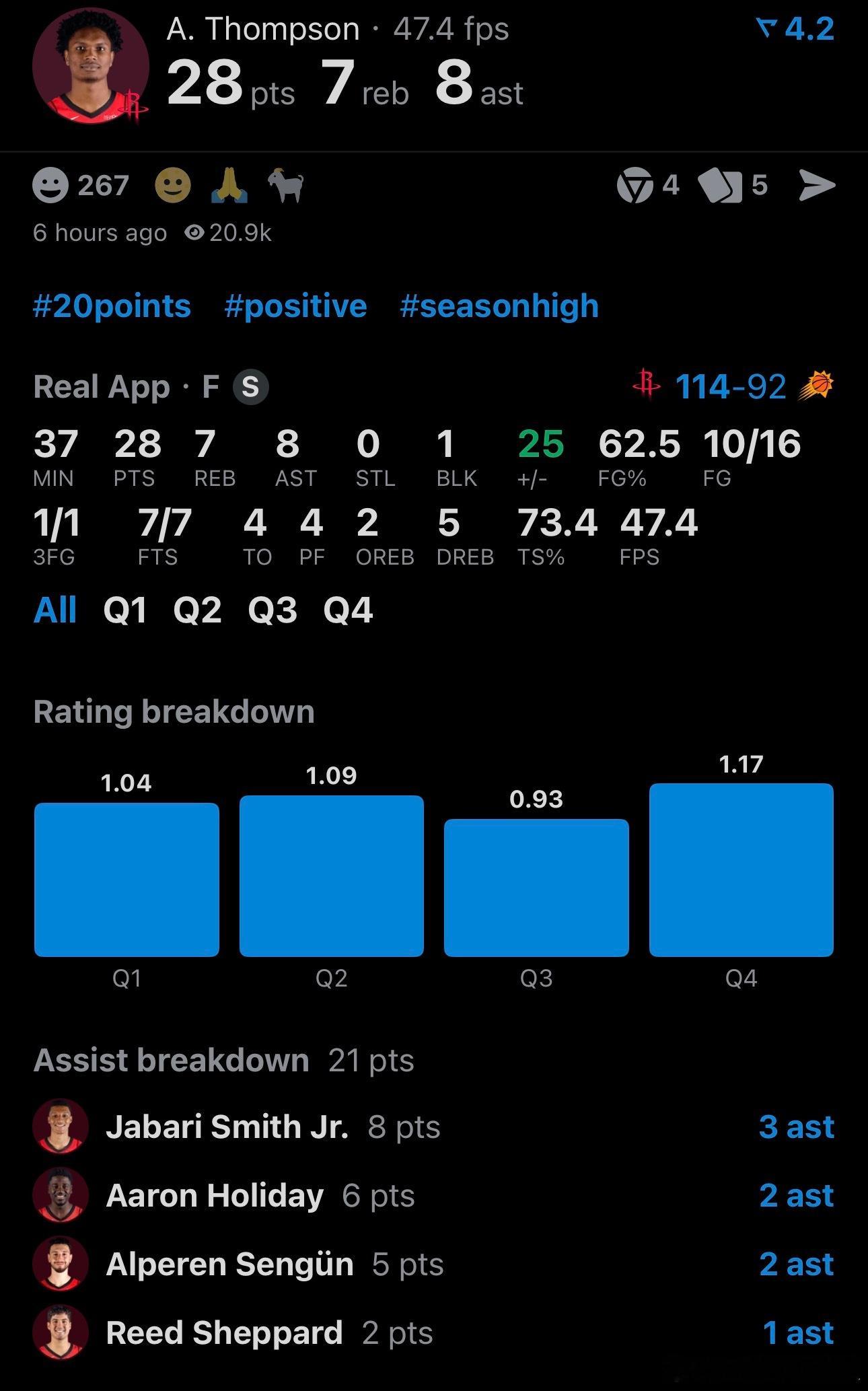 无杜兰特,火箭114-92大胜太阳,无非三个原因!1,阿门确实很强,天赋异禀