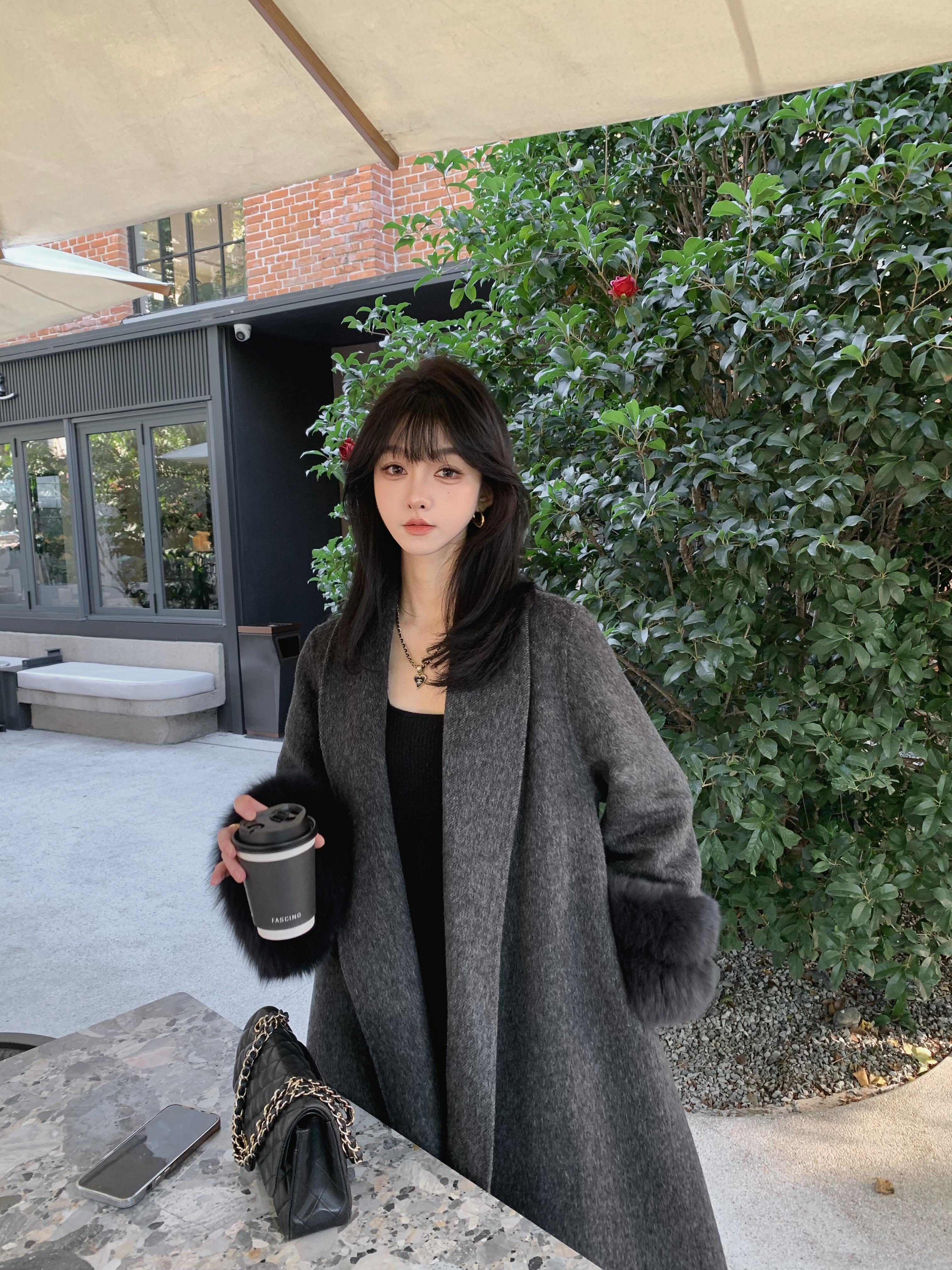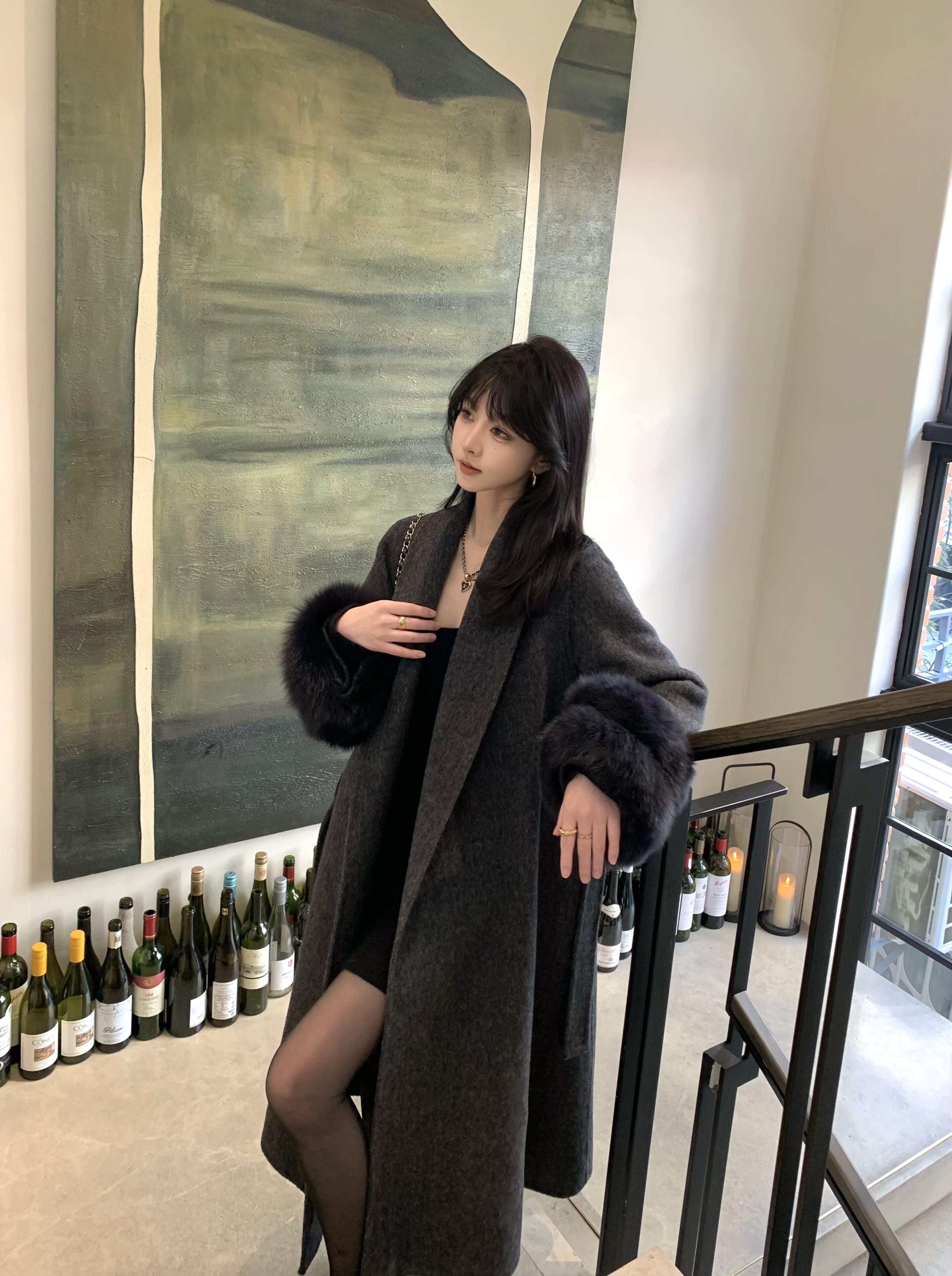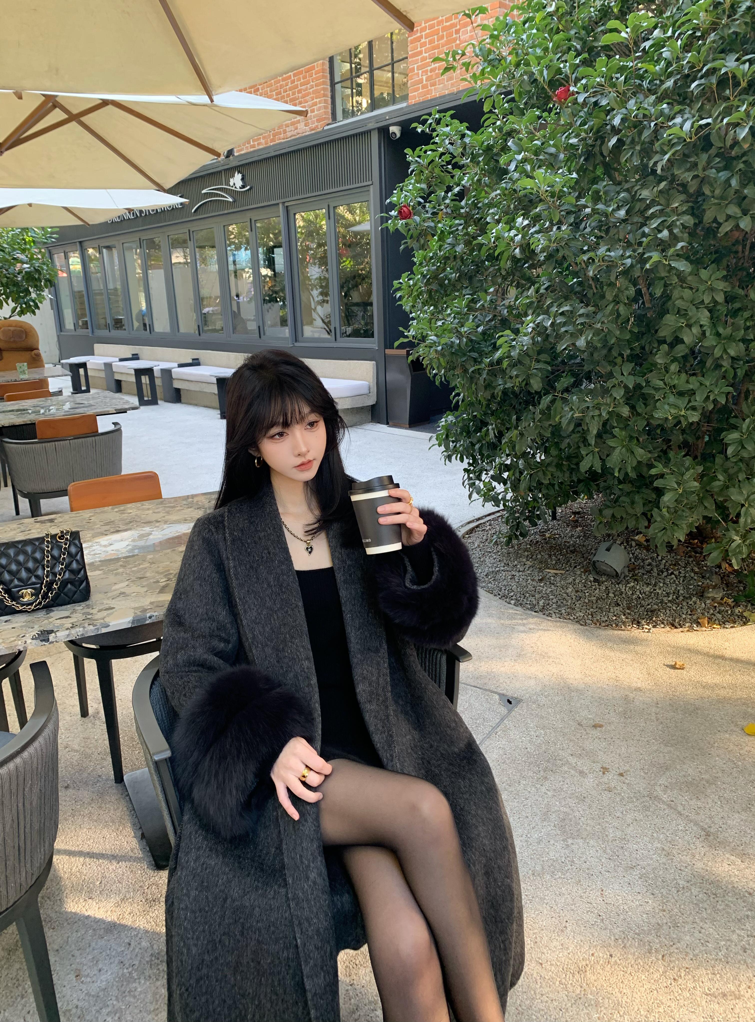 奶白色+黑色字母印花自带潮酷松弛感,毛绒材质又暖又软,冬天裹在身上既舒服又有“慵