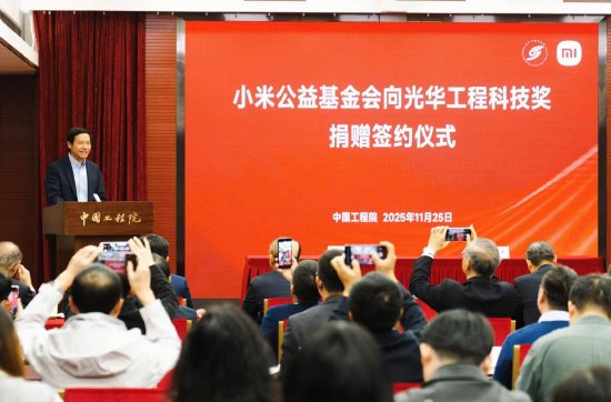 新浪科技讯11月25日晚间消息,小米公益基金会向中国工程界最高奖项——光华工程科技奖捐赠5500万元,中国工程院党组书记、院长李晓红和小米集团创始人、董事长兼CEO雷军,共同见证了签约仪式。