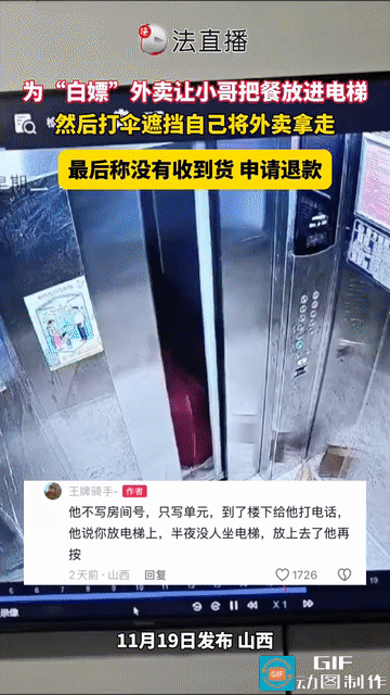 真够无耻的!顾客点了一份外卖,只写单元号不写房间号,让外卖员放到电梯上就行,等外
