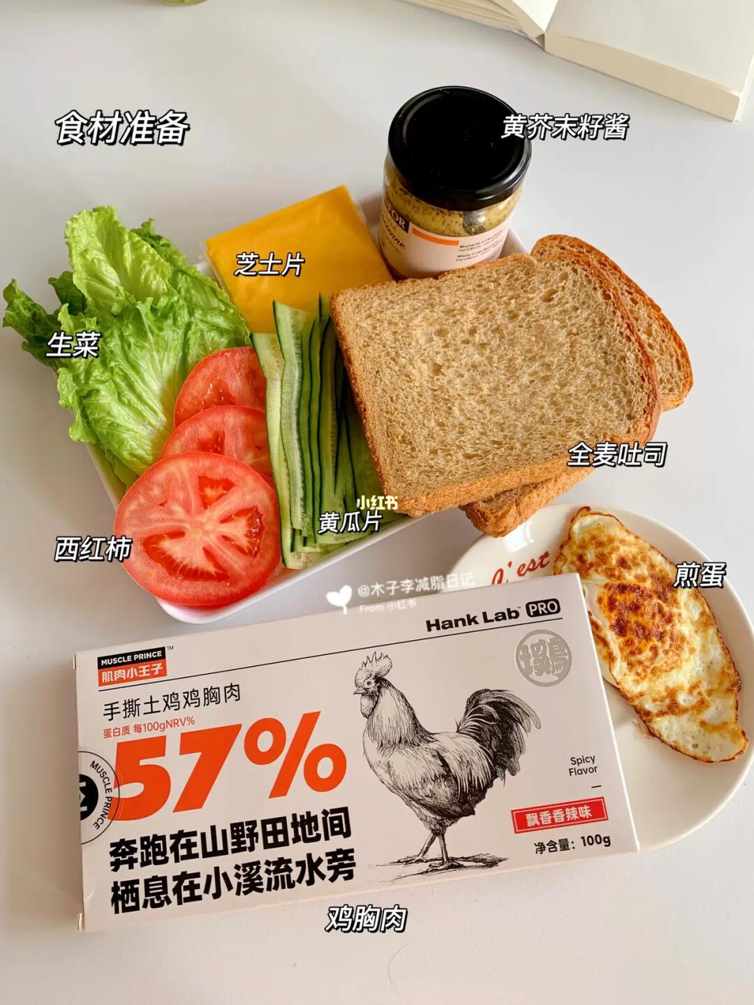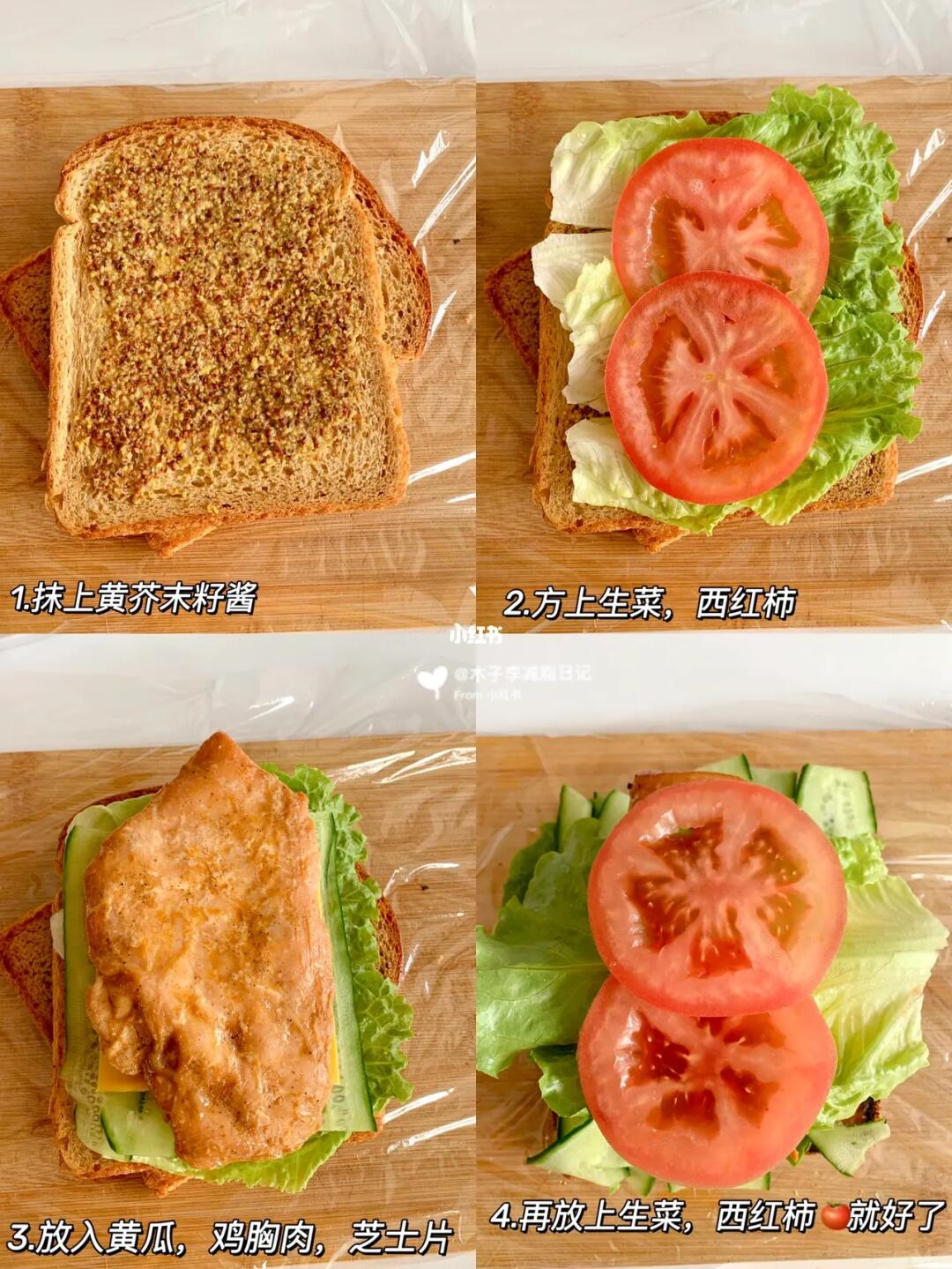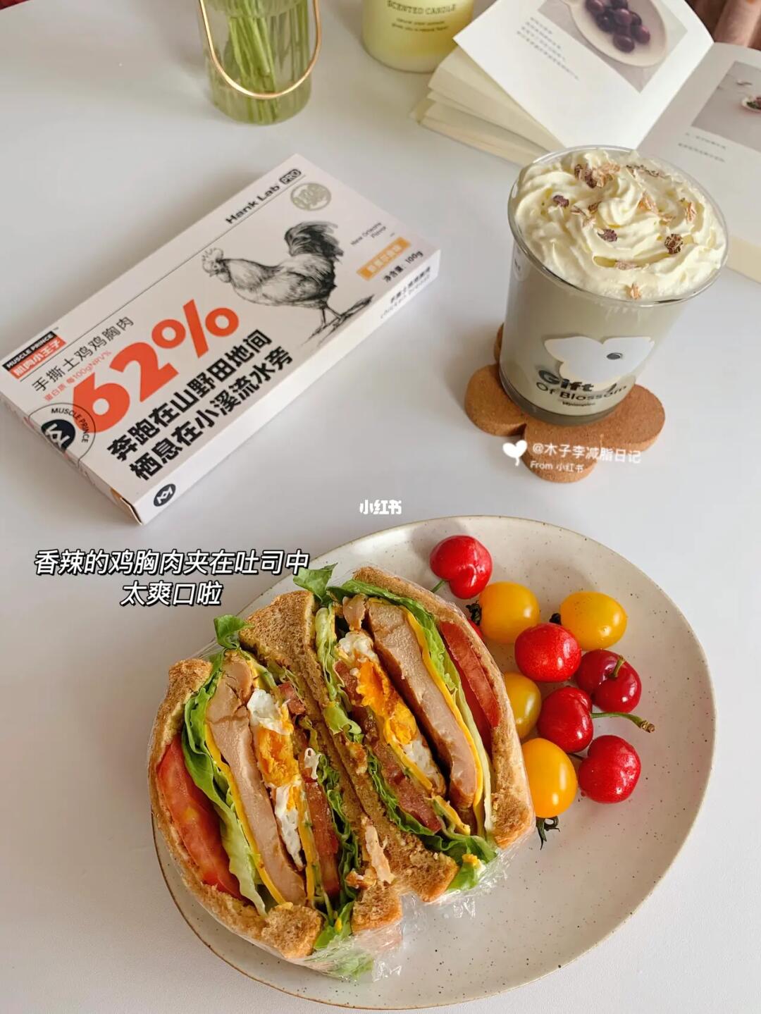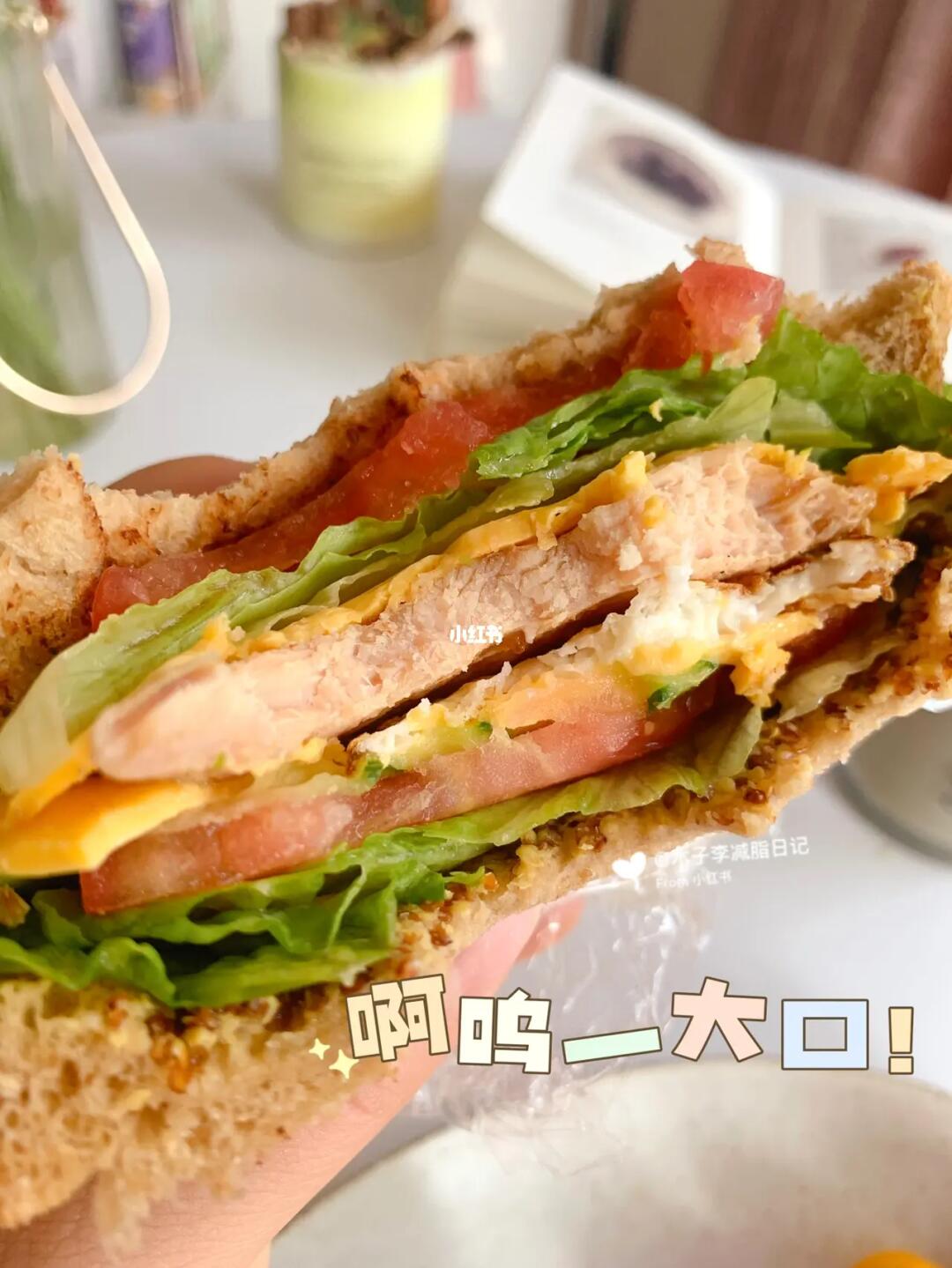 今天吃鸡胸肉三明治🥪早餐不知道吃什么来一份三明治🥪准没错啦!多料简单又好吃😋~