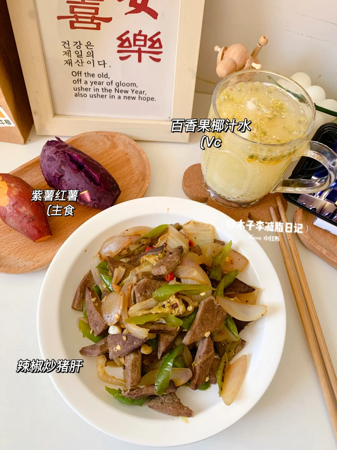 🥙午餐:辣椒炒猪肝➕百香果椰汁➕紫薯红薯