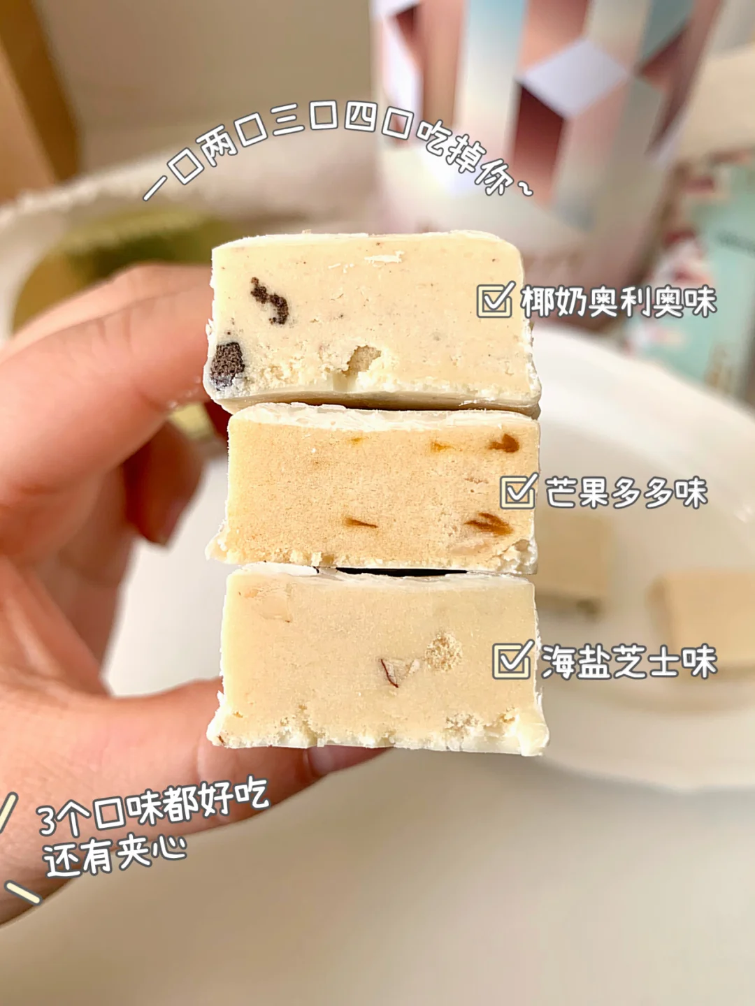 🔔铛铛铛~最近又挖到一款敲平价的蛋白棒 一盒才44元/9根、自己算是不是很平价! 这款不管性价比还是口感在李李认为是坠吊的!热量也敲低滴!我入的是混合口味装、1️⃣芒果多多味:夹心里面有芒果干、酸甜可口很清新~🥭控🉑2️⃣海盐芝士味:是我zui爱的、海盐配芝士~咸甜交织、芝士味浓郁不腻、绝啦!芝士控必冲~3️⃣椰奶奥利奥味:打开就能闻到椰奶香、微甜不腻!好吃😋