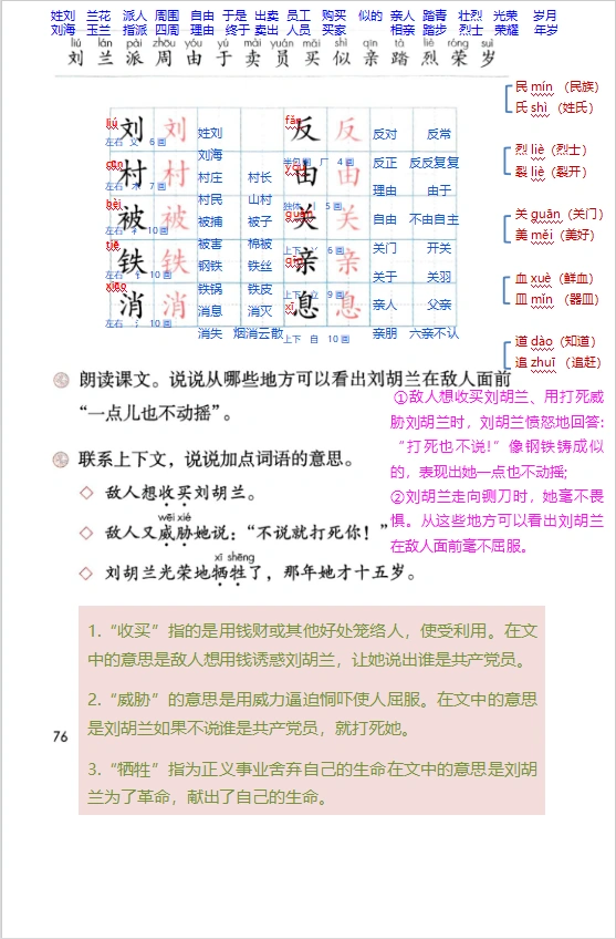 二上语文第17课《刘胡兰》详细笔记