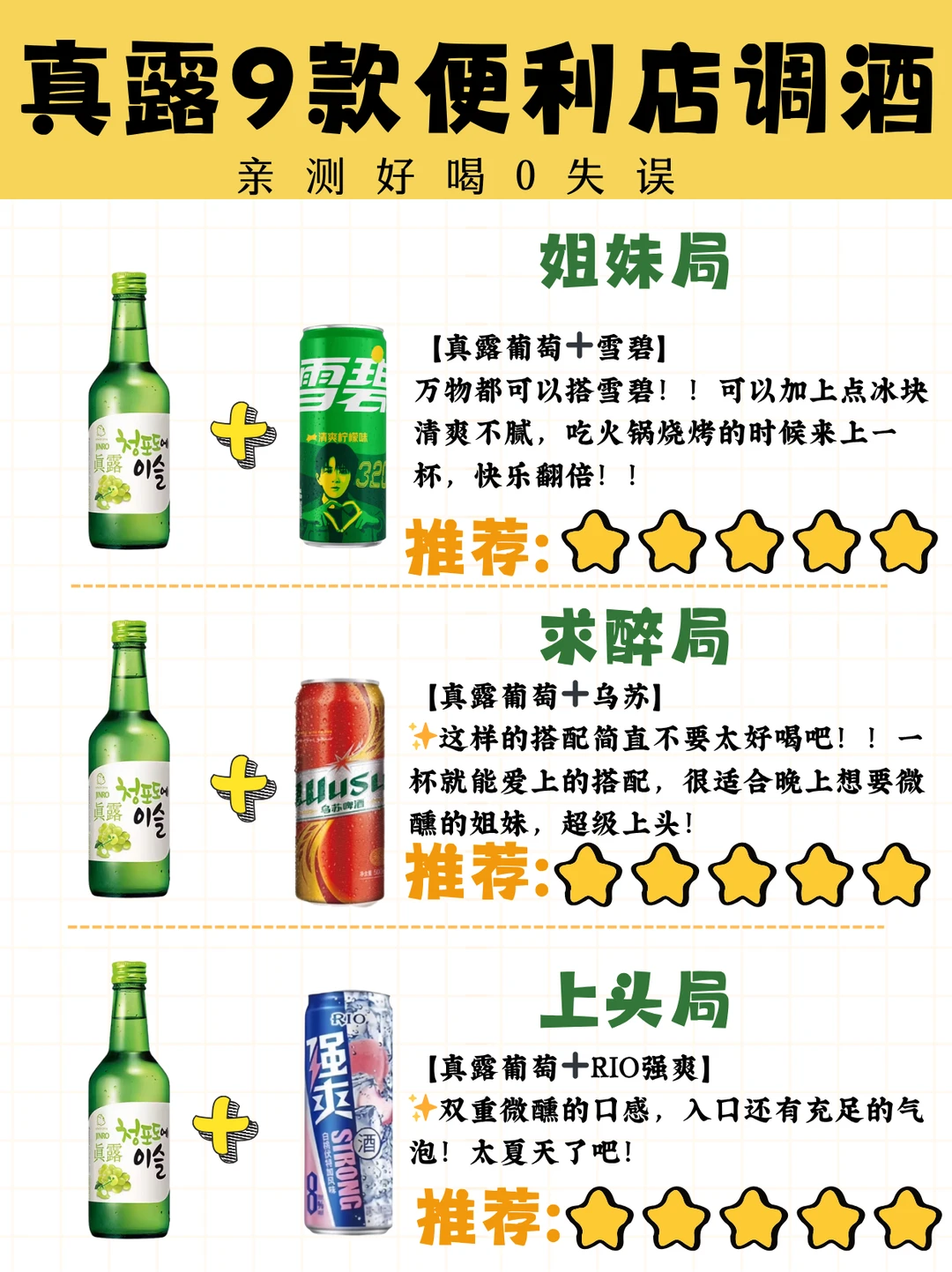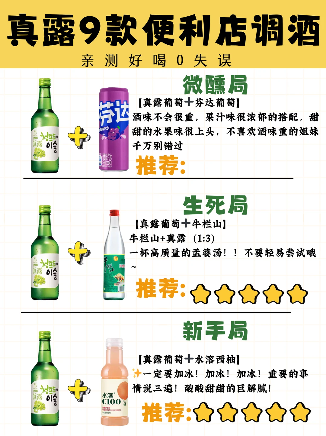 这次给大家整理了几款我非常爱的真露调酒搭配📚