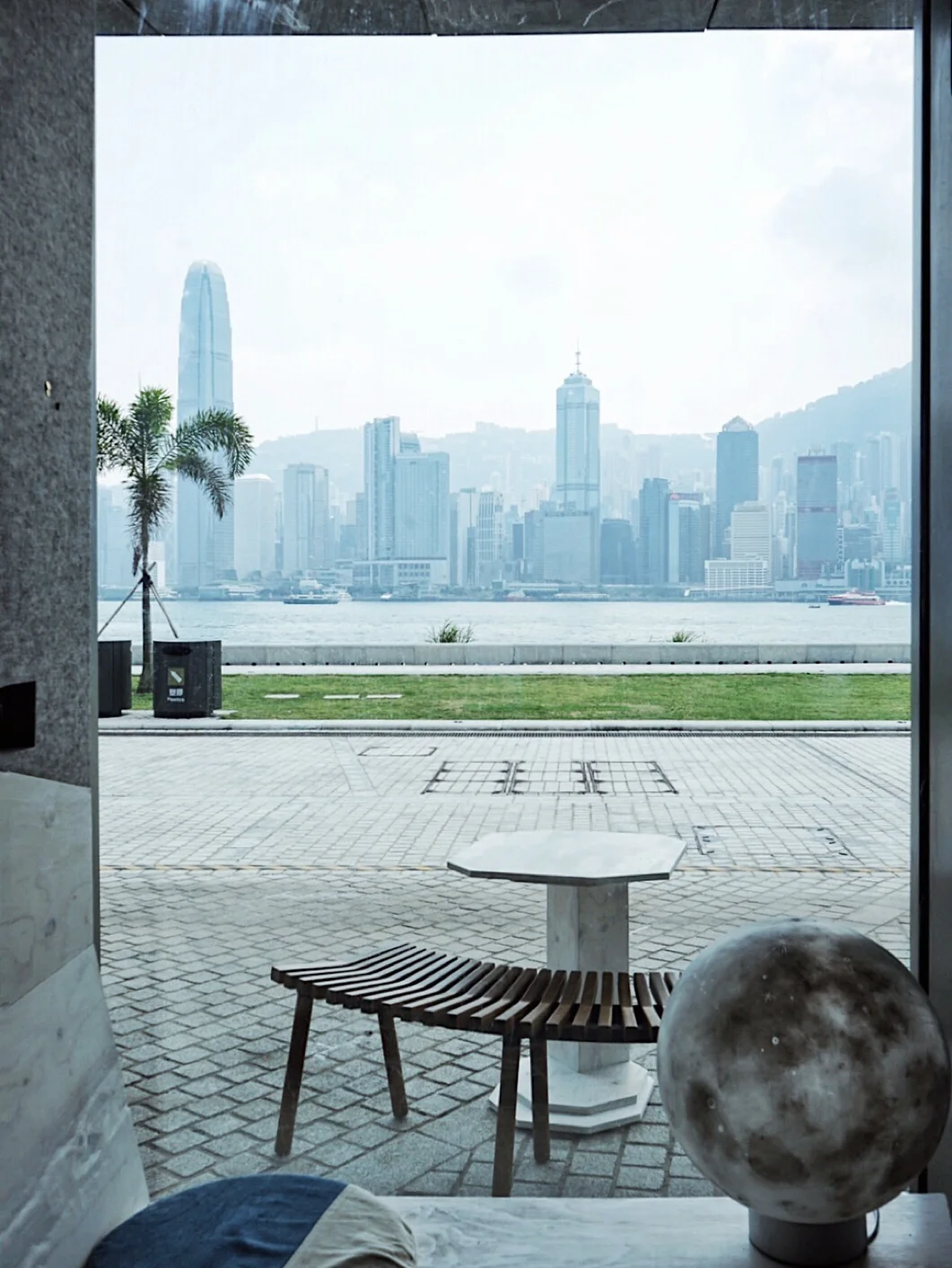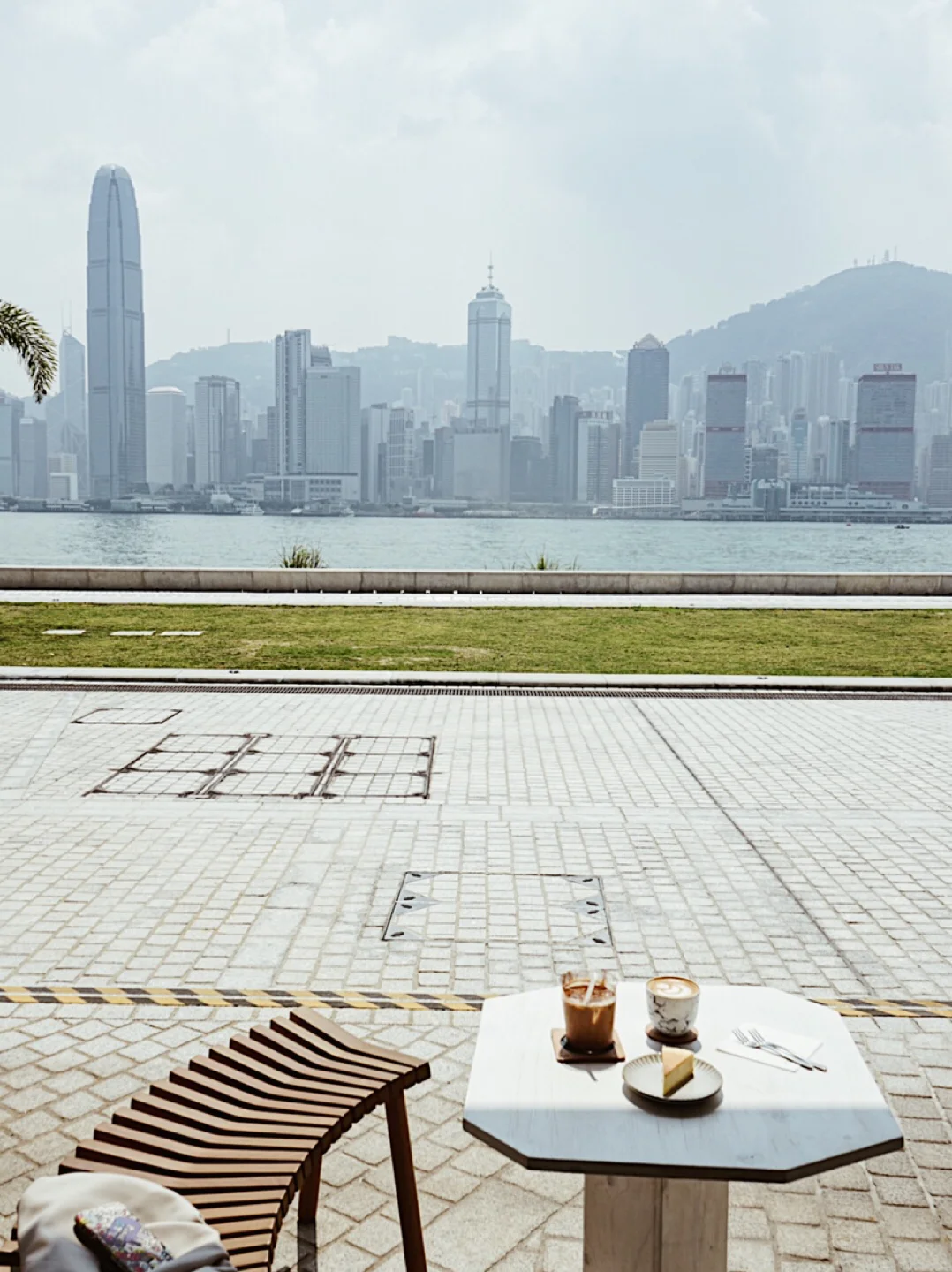 ☕️这间咖啡以灰白水泥作主调,装潢简约。但很喜欢一些细节,譬如店员扎染的蓝色衬衣,take away咖啡的纸杯,杯垫、座垫,跟户外无敌的维港景色相呼应。天气凉快点的时候,可以坐在草地上,看景聊天晒太阳🌞,店铺在西边,日落时分,还可以看sunset,应该非常惬意。