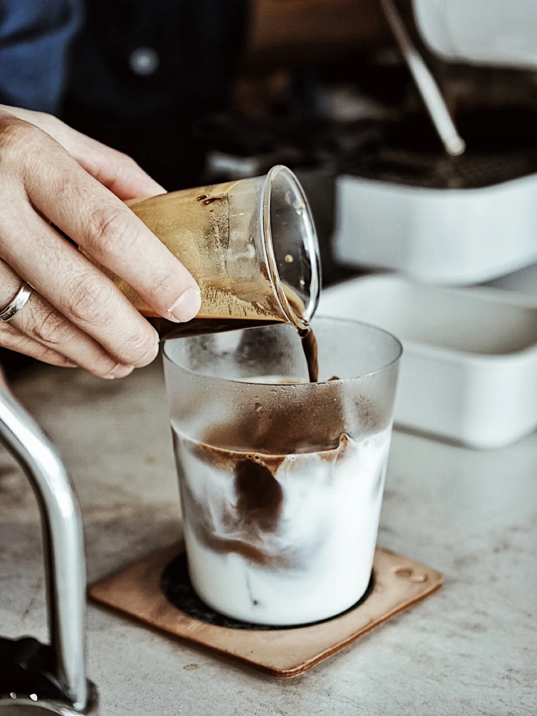 ☕️这里的咖啡没有menu, 店员建议我在水泥盘上闻咖啡的香味,再决定选择哪一款咖啡粉。冲法也分为—黑、白、手冲、Expresso tonic,还可以选择1⃣️+1⃣️combo,一咖两味。另外,我很喜欢这里的咖啡杯,据说这些咖啡杯都是店主的收藏,又来自捷克🇨🇿,也有专为咖啡设计的日式清酒杯🍶,不拘一格。另外,纸质的take away的咖啡杯也很美。如日本的清酒文化,可以选一个自己心仪的咖啡杯,享受咖啡时光。另外,在IG上看到有博主拿维港做背景拍咖啡,还是很美的。做了一点功课,看到大家的点评,据说抹茶🍵latte和Matchagato抹茶雪糕🍦,据说味道深浓甘香,也很不错。