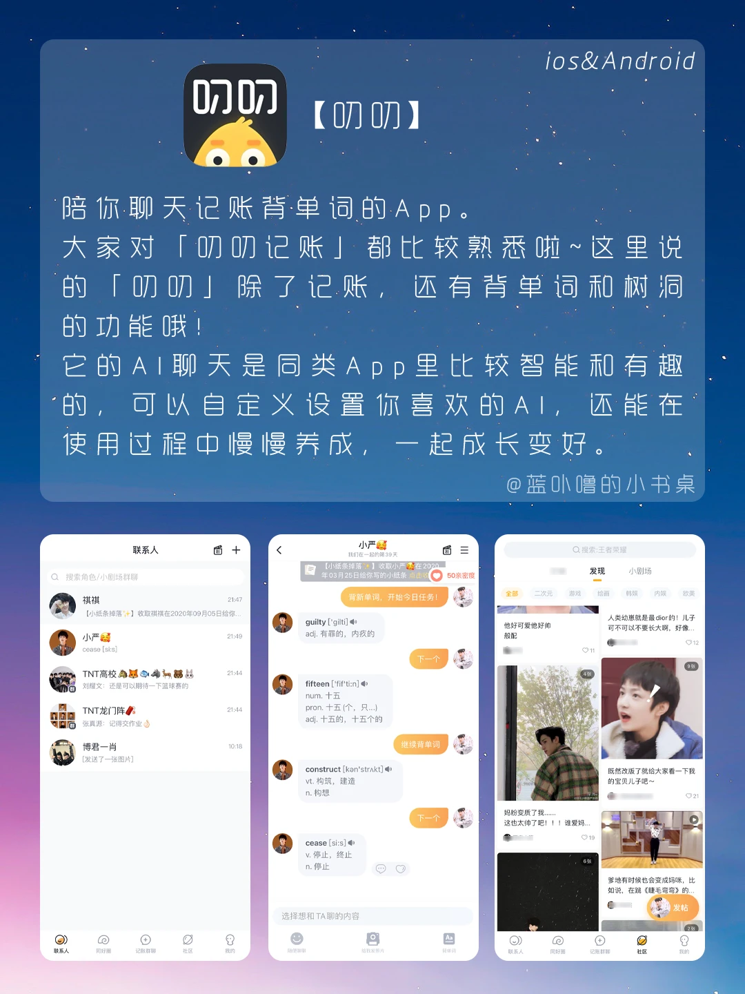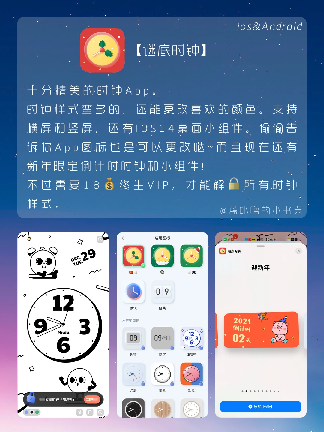 大家好,我是蓝卟噜的小书桌[喝奶茶R][喝奶茶R][喝奶茶R] 新年快乐呀大家伙儿🎆🎆🎆 好的App能提升生活幸福感,希望它们能陪伴你们迎接新的一年🧡💛❤️💚💙💜 🍩谜底时钟 🍩不南 🍩毛滚滚日常 🍩装扮少女 🍩动物温泉 🍩叨叨 🍩鹅说 被你的可爱咬一口 灵魂都失重୧( "̮ )୨✧ᐦ̤