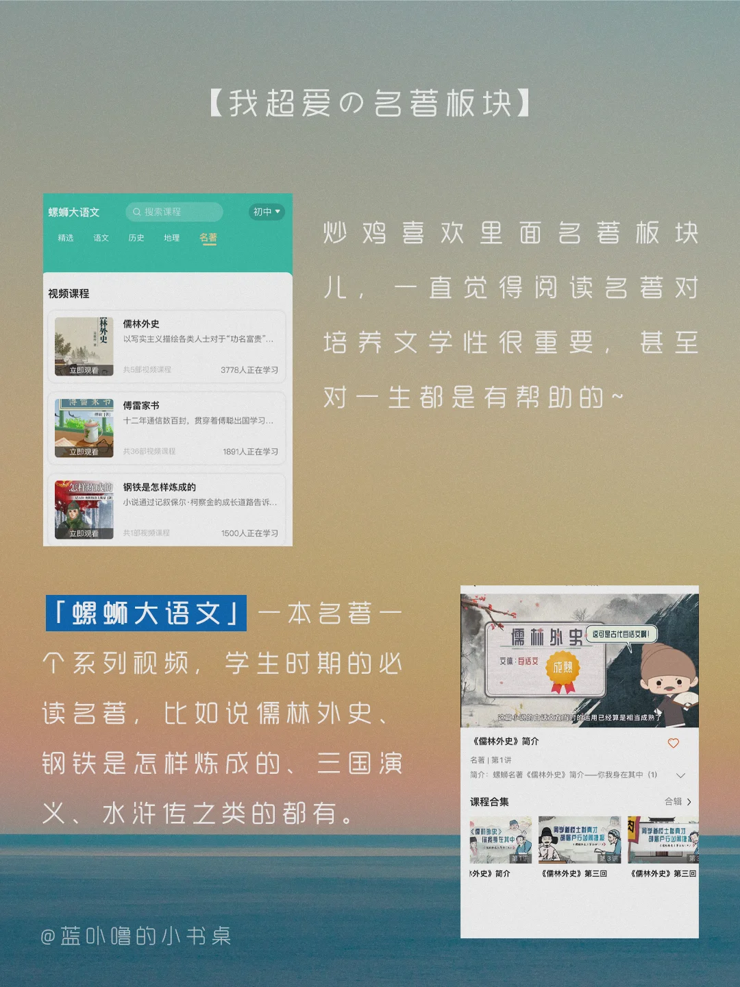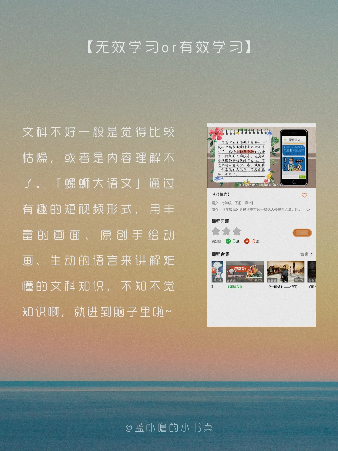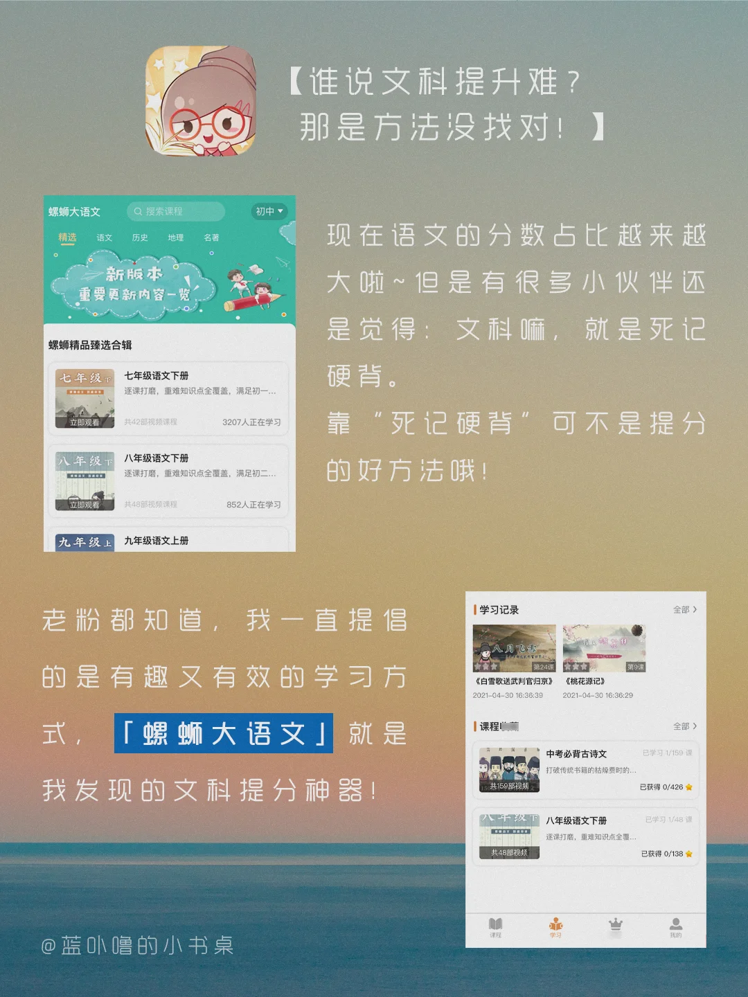 大家好,我是蓝卟噜的小书桌[萌萌哒R] 找到过好用的英语App,找到过棒棒的日语App 今天让我发现了一个语文学习神器👉🏻「螺蛳大语文」💥 具体的👀图👆🏻👆🏻👆🏻 ☀️偷偷厉害 万事尽可期待☀️