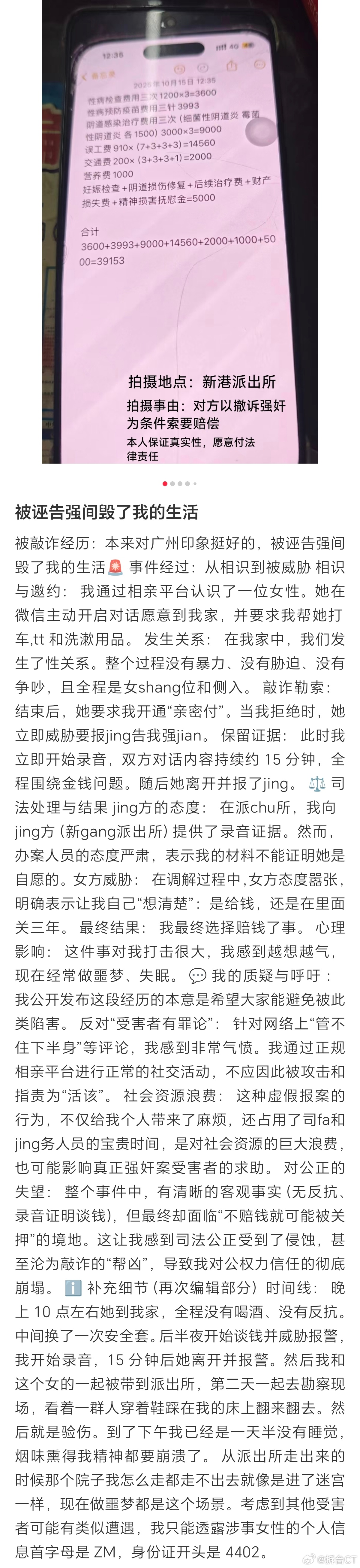 在小📖上吃到个瓜。一男生吐槽称,自己被约跑对象诬告强煎。原来,两人通过相亲平台认识后,互加了联系方式。疑似在隔天就发生了关系。男生说,对方是主动打车来到他家,并要求他报销打车钱,购买TT和洗漱用品。发生关系的整个过程,没有暴力、胁迫及争吵,且全程是女上位及侧入。发生完关系后,女方提出开通亲密付,遭到拒绝后称将控告他强煎。他立即开启录音,约15分钟的对话里几乎都在金钱展开。他以为这是证据,但对方报警后,报案人员却告诉他,其录音材料不能证实是女方自愿。调节过程中,女方态度嚣张,并让他想清楚到底是给钱还是坐牢。出于无奈,他最终选择赔钱了事。
