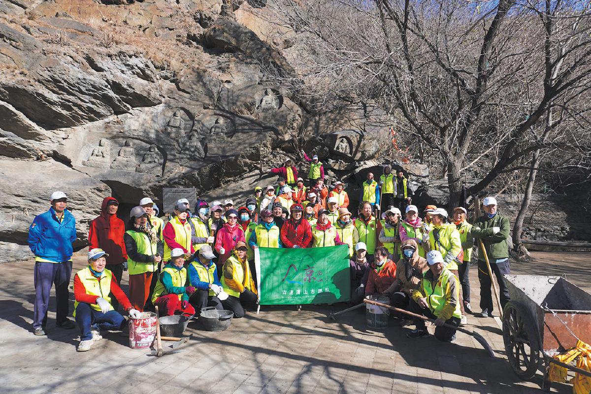 在他的讲述中,这支以保护京西古道为主题的公益志愿组织,起源于践行环保的登山爱好者。志同道合的人越聚越多,2014年队伍正式组建,5年后在“志愿北京”平台注册,如今注册志愿者3000多人,主力队员200多人,在当地号召下,每周都会组织古道清山公益活动,保护沿线文物、宣传古道文化……十多年来,累计志愿服务时长超过12万小时,在古道上行走约2.5万公里。