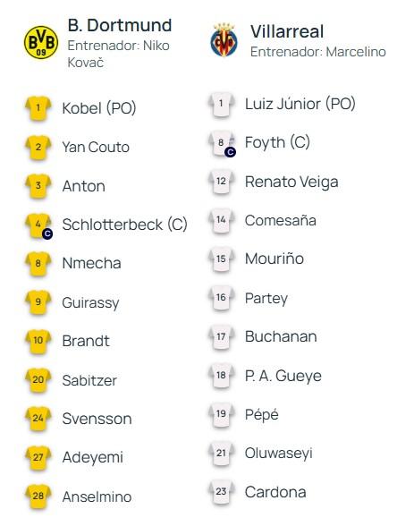 多特vs比利亚雷亚尔首发:阿德耶米、吉拉西领衔出战