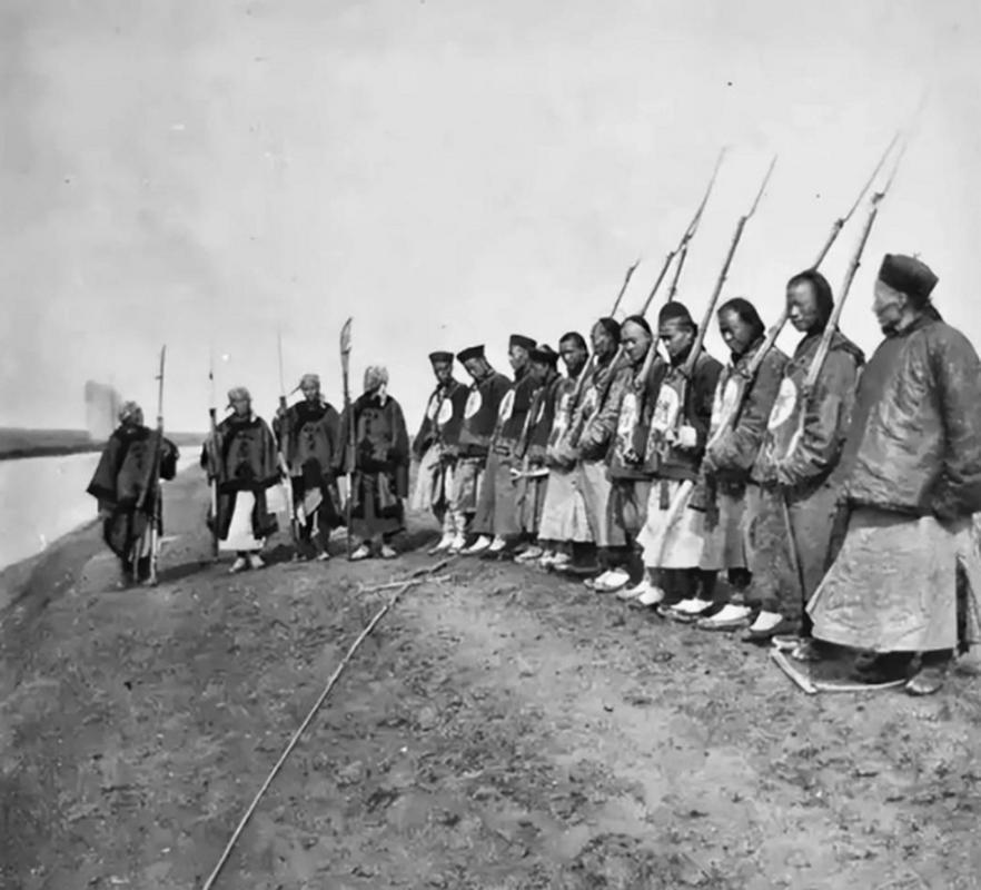 这是一张晚清时期山东地方乡勇的合影,镜头里的他们并非清廷正规军,只是地方临时招募的民兵武装。 画面里,这群乡勇零散地列队站在土路边,身上的衣装是粗糙的传统袍服,混杂着便装与简陋的制式服饰,显得驳杂不一;手中的武器多是冷兵器时代的刀、长矛,仅有几支老旧的火枪,与同期列强的近代化装备相去甚远。他们的队列松松散散,姿态萎靡,有人垂头、有人随意斜站,全然没有正规军队的纪律感。