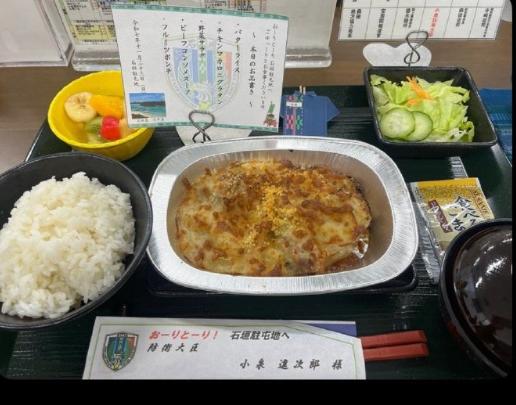 44岁的小泉进次郎晒午餐,几片蔬菜和水果,半碗饭和一坨糊糊。 俗话说半大小子吃穷老子,当兵是个体力活,饭量大才能补充训练中消耗的能量。 小泉进次郎好歹是个领导,他到冲绳石垣岛自卫队驻地吃的午餐分量这么少,小碗小碟装一盘。
