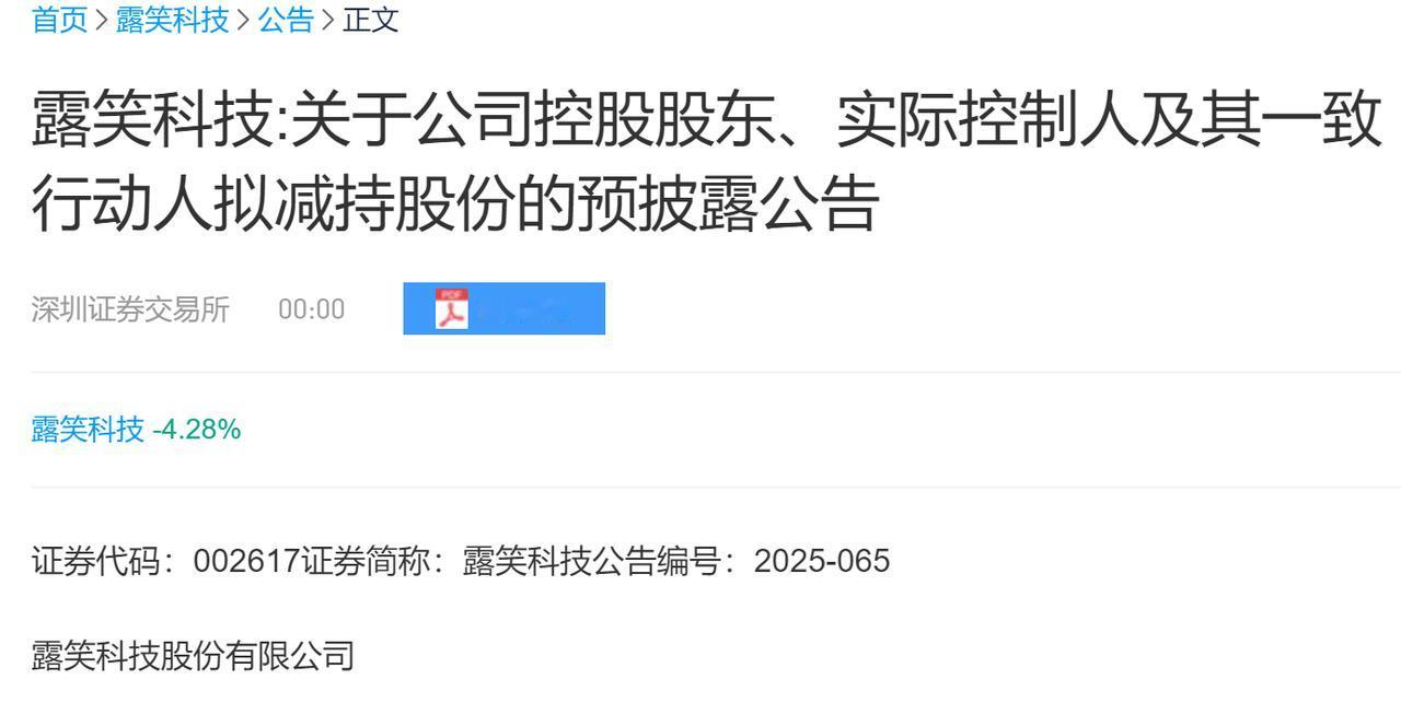 【A股】一纸公司减持公告,露笑科技直接打出近期新低! 由此看来,大股东减持,对