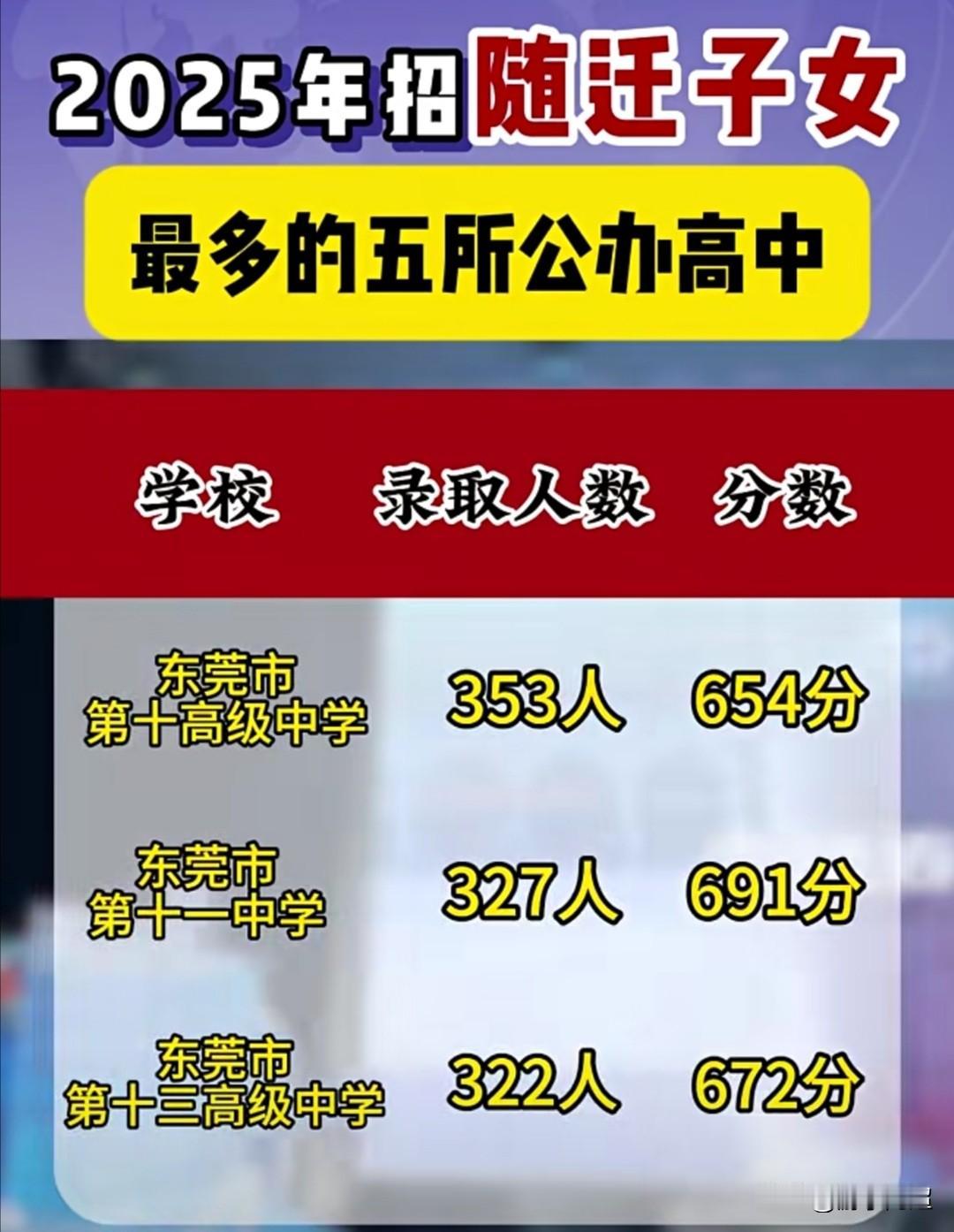2025年东莞中考招随迁子女数量最多的5所公办高中。 2025年,东莞招随迁子女名额最多的公办高中是麻涌中学,其录取分数线为643分,录取人数达376人。 今年东莞随迁生招生计划较2024年增加了200人,且首次达到5000人。
