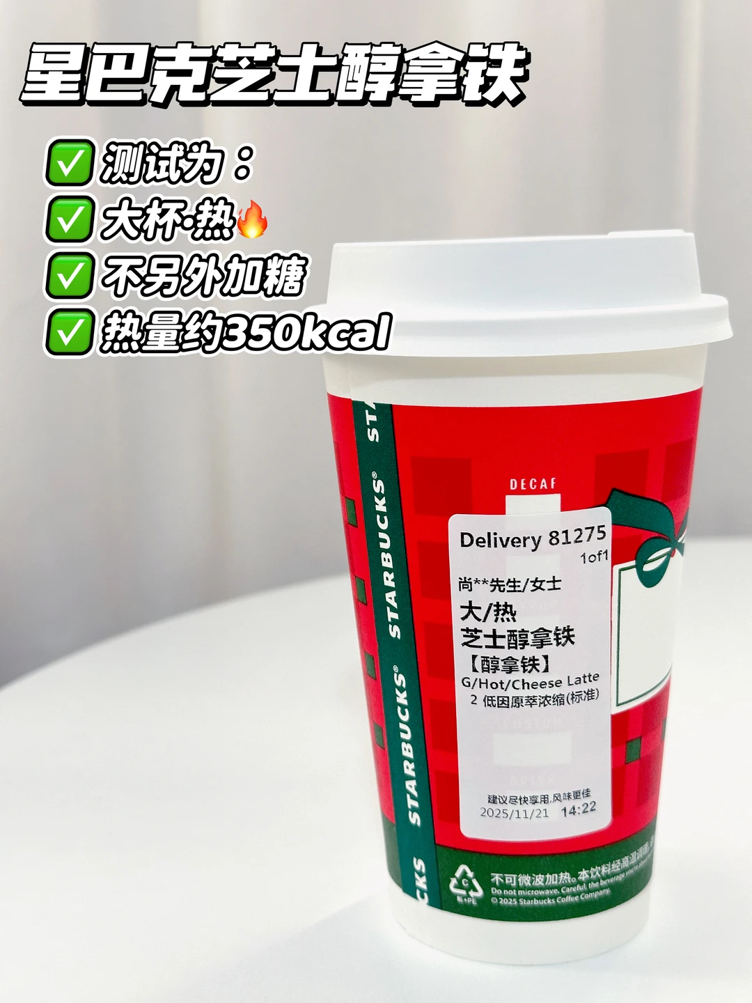 测试为:大杯·热🔥不另外加糖 热量约350kcal