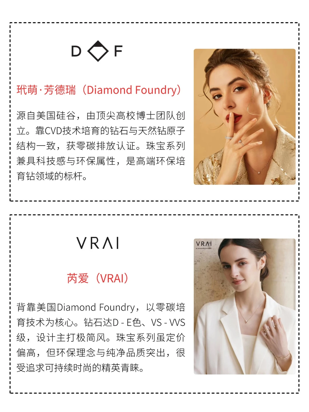 被誉为培育钻界的“爱马仕”,专注高端私人定制。采用无改色CVD技术,钻石品质达D-F色、VVS-VS级,切工为IDEAL等级。意大利精工镶嵌,支持300+款试戴与VIC服务,提供GIA/IGI证书及终身售后,风格多样。