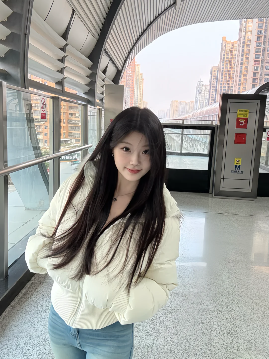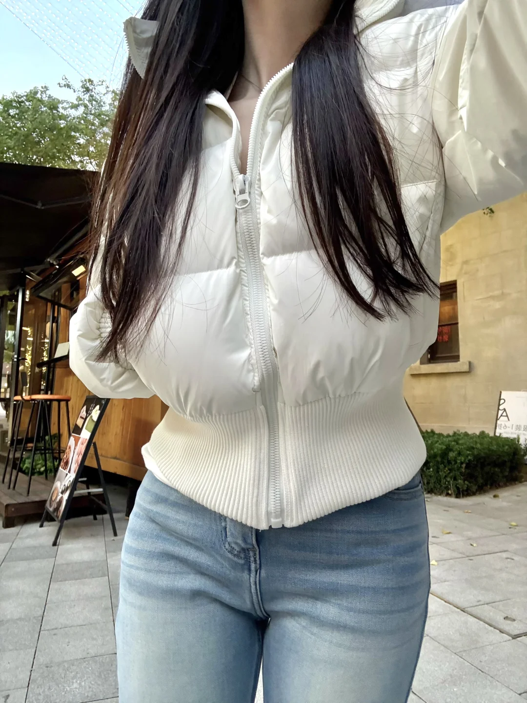 原来不是所有羽绒服都会穿的胖胖的很臃肿嘛!! 这个收腰很宽居然还蛮暖肚子的嘞。