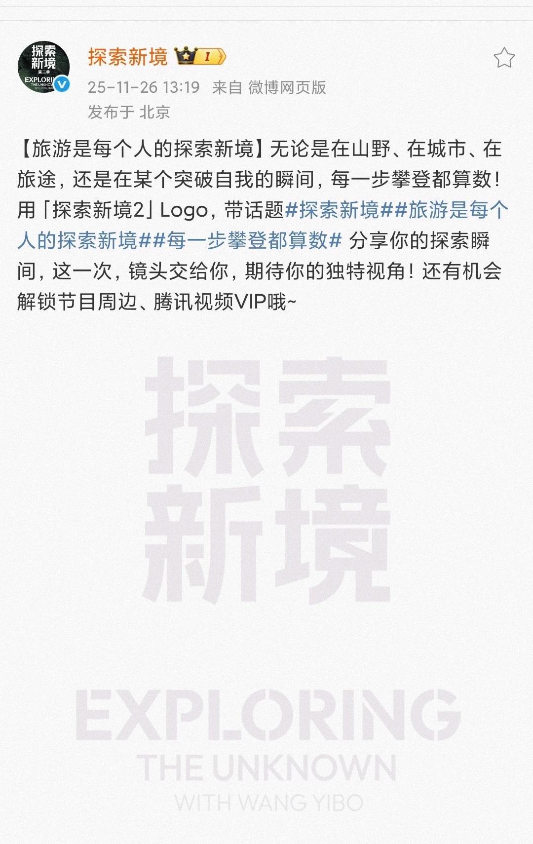 王一博个人ip的纪录片《探索新境》第二季要来啦,然后“探索新境”这个logo在🍠已经火了[赞]。 薯人纷纷晒出加上了“探索新境”logo的自己的旅行照片,果然秒变质感大片,高级感拉满。 王一博和他的绝对个人ip的《探索新境》再次强势出圈🔥。 官方随后发声支持——“旅游是每个人的探索新境”。 你别说,给自己曾经随手拍下的照片加上“探索新境” logo,果然瞬间有了不一样的“心境”[大金牙]。 王一博探索新境2 旅游是每个人的探索新境