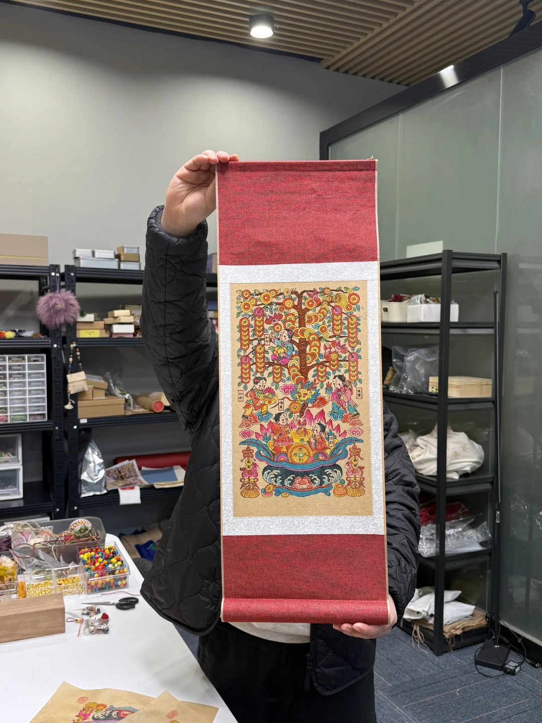听取大家想要更耐看、不过时的呼声,我们新增中式卷轴的挂画形式,让年画省去装裱的苦恼,不变的是依旧坚持手工套色;