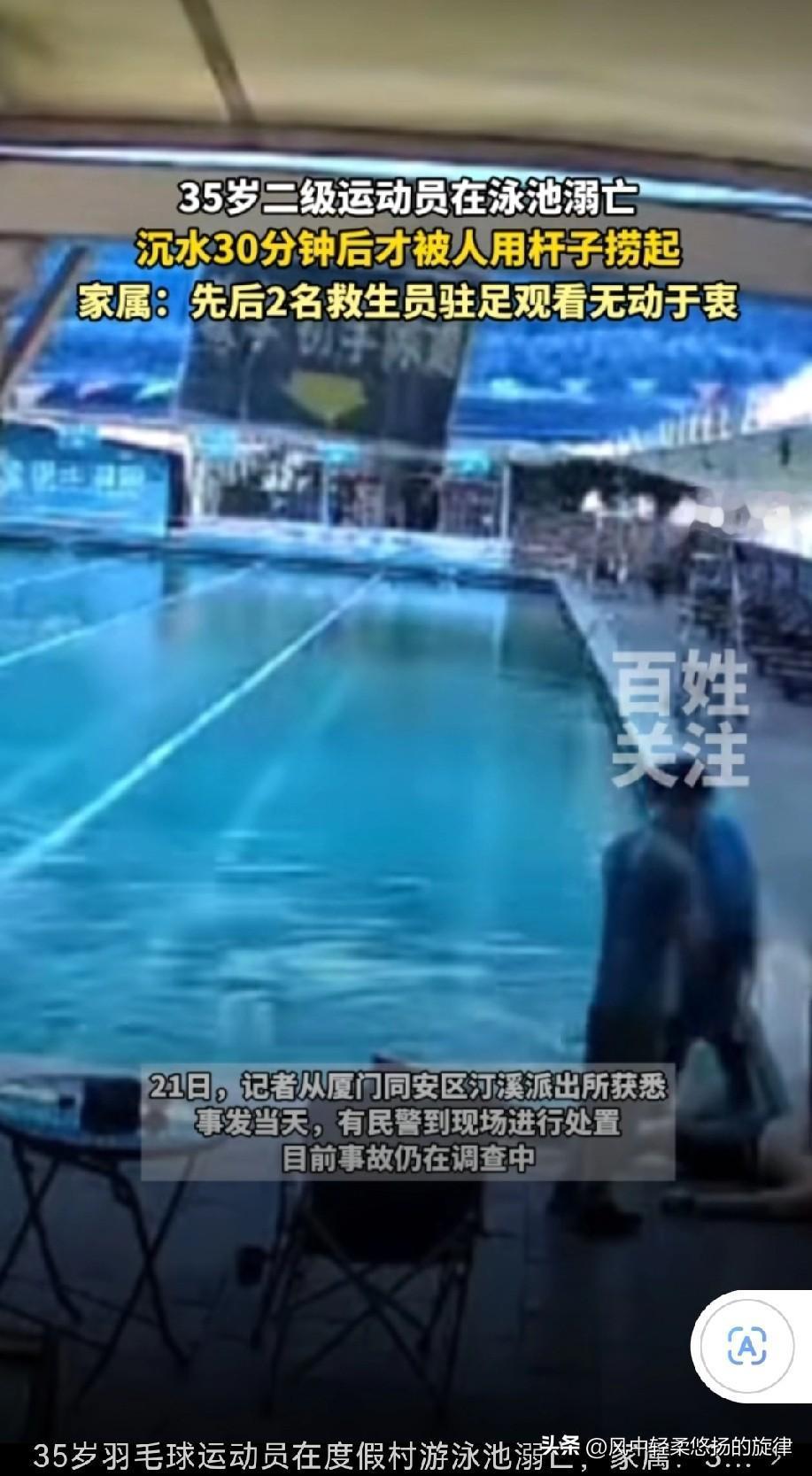 35岁羽毛球运动员厦门度假村游泳池溺亡,家属怒诉:3名救生员紧邻,却沉水30分钟