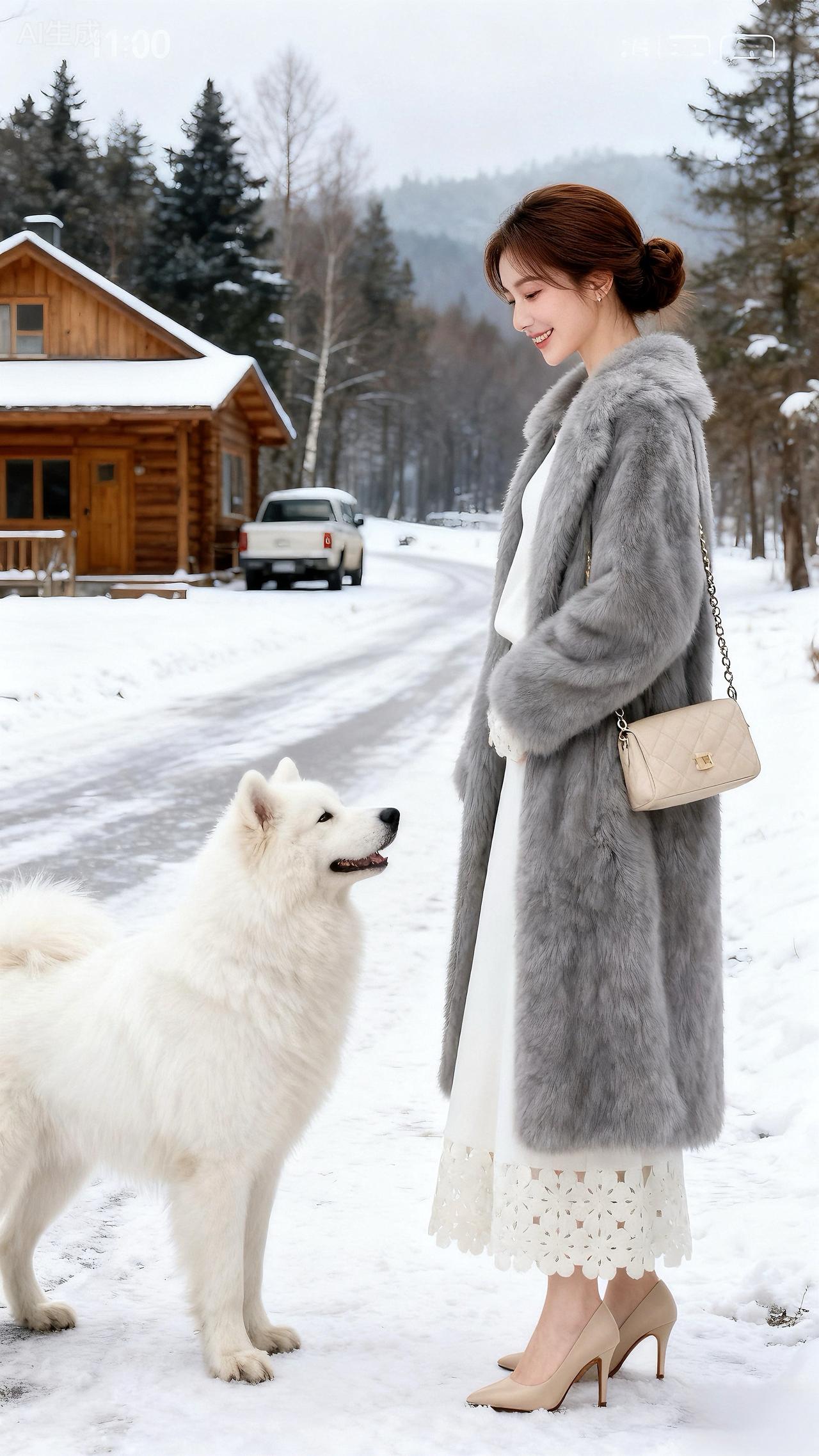 175|100方扣平底鞋与深色丝袜,秋冬的毛绒绒穿搭,