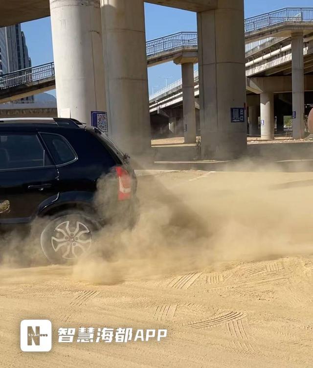 记者看到,桥下空地上已停了不少私家车,由于地面未做硬化,黄土地被车轮碾出深深浅浅的痕迹。“上个月这里还是一片绿油油的草坪,现在全变成了黄土地。”闽侯县上街镇龙舟俱乐部的林先生指着停车场区域说道。他每天在桥下训练,亲眼见证了草坪被铲平的过程。“周末来动物乐园的游客多,停车需求确实大,但直接把草坪铲掉、铺上黄土作临时停车场,粉尘问题太严重了。我们训练时都得戴口罩。”