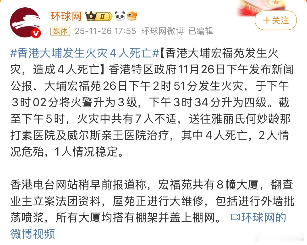 天啊‼️香港这是好几栋楼都在烧吗香港火灾香港突发大火已致4死3伤