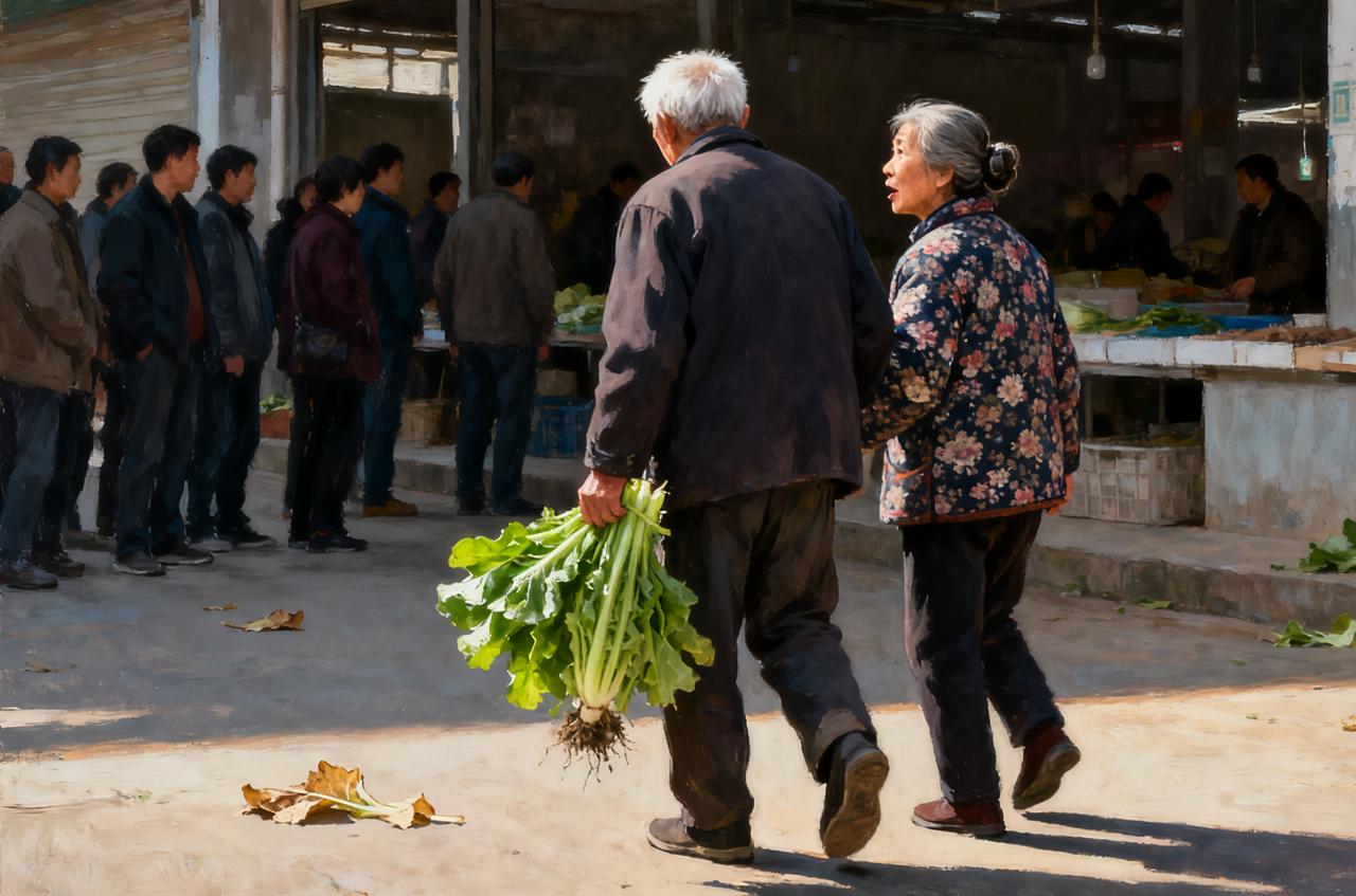 今天我在路上看到一个老太太和一个老头在吵架,俩人站在菜市场门口,围着一圈吃瓜的,我立马凑上去,妥妥占个前排唠嗑位。老头攥着半兜蔫巴巴的青菜,脸憋得通红,老太太叉着腰,嗓门亮得能穿透人群,“让你买把新鲜菠菜炖豆腐,你倒好,拎这堆油麦菜回来,眼是长头顶上漏光了?” 老头急得摆手,梗着脖子反驳:“菜市场菠菜都打蔫了,油麦菜嫩得能掐出水,炒着吃不比菠菜香?”老太太更气了,伸手拍了下老头胳膊,“香能当菠菜用?我跟你说三天了,孙孙今天回来要吃菠菜泥,你偏不上心!”围观的人忍不住笑,有人劝“多大点事,别吵了”,老头却瞪了劝的人一眼,“我们俩的事,外人别掺和!”我在旁边嘀咕,果然“清官难断家务事”,老两口吵架,从来离不开这些细碎琐事,看着凶巴巴的,倒也没真动火气。 可没等两分钟,俩人吵得更凶了,老太太眼角都泛红了,老头攥着菜袋子的手攥得指节泛白,像是真要动气。围观的人都屏住呼吸,我也往前凑了凑,心想这事儿怕是要闹大。谁知下一秒,老头突然往口袋里掏东西,慌慌张张摸出个小药瓶,往老太太手里塞,“行了行了不吵了,快把降压药吃了,你早上出门忘带,这都晌午了,气坏身子咋整?” 老太太愣了愣,没接药,反而伸手往老头另一个口袋里摸,掏出另一瓶药,语气软了大半,却还嘴硬:“你还好意思说我,你那降糖药也没吃,天天记不住,不跟你吵两句,你压根没记性!”这话一出,围观的人全惊掉下巴,合着俩老人吵得脸红脖子粗,不是为了菜,竟是为了催对方吃药。 老头叹口气,没再反驳:“刚才看菠菜蔫,想着换油麦菜,转身就忘了拿药,怕你怪我不上心,才跟你犟两句。”老太太把药瓶拧开,递了粒降糖药给老头,又自己含了粒降压药,嘟囔着:“跟你说多少回,药比菜重要,你偏不听,不吵你两句,你能记着?” 俩人没再吵,老头拎着油麦菜,老太太走在旁边,时不时念叨两句,脚步却故意放慢等着他。我站在原地,心里又好笑又无奈,老两口年纪大了,记不住吃药,只能用这种笨拙又别扭的方式提醒彼此,没什么惊天动地的矛盾,全是藏在争吵里的惦记。散场时看着他俩并肩往前走的背影,忽然觉得这份裹着争吵的牵挂格外戳人,日子就是这样,没那么多光鲜,只剩细碎的暖,只是这份暖藏得深,不拆透,真难看清内里的软,想想竟有点说不清道不明的怅然,大概这就是老一辈人藏在烟火里的相处模样吧。菜市场吵架