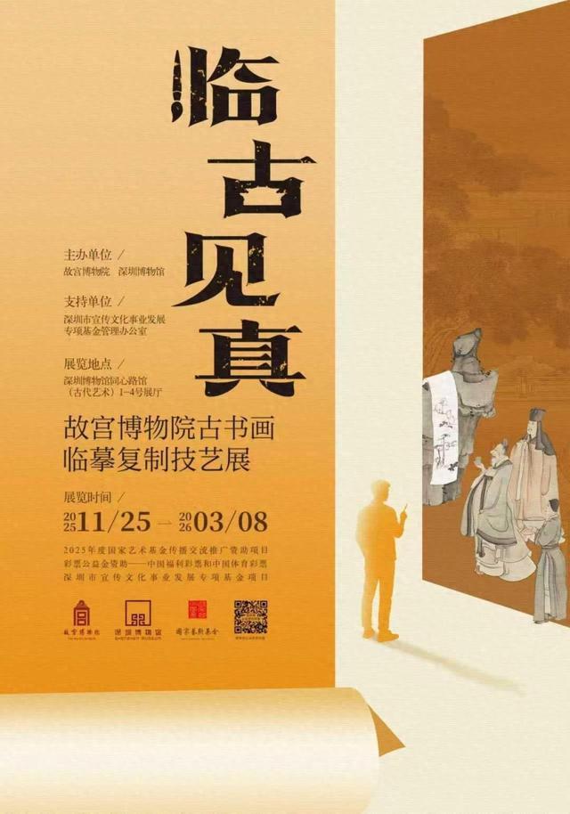 2025年11月25日,“临古见真——故宫博物院古书画临摹复制技艺展”于深圳博物馆同心路馆(古代艺术)精彩开幕啦!本次展览由深圳博物馆联合故宫博物院携手打造,由国家艺术基金、深圳市宣传文化事业发展专项基金等支持。展览将持续展出至2026年3月8日。